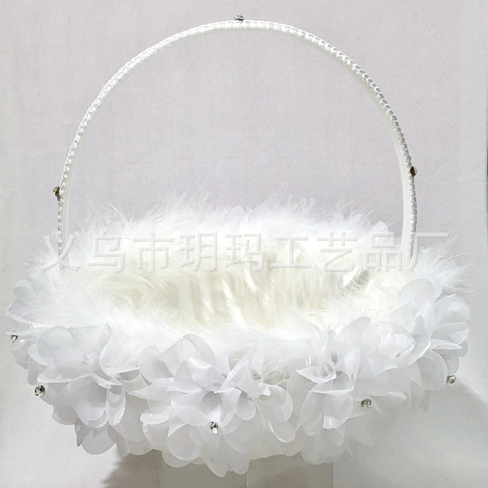 western-style wedding supplies bridal wedding flower girl flower basket ostrich hair flower basket diy decoration gift