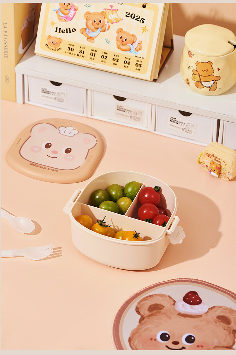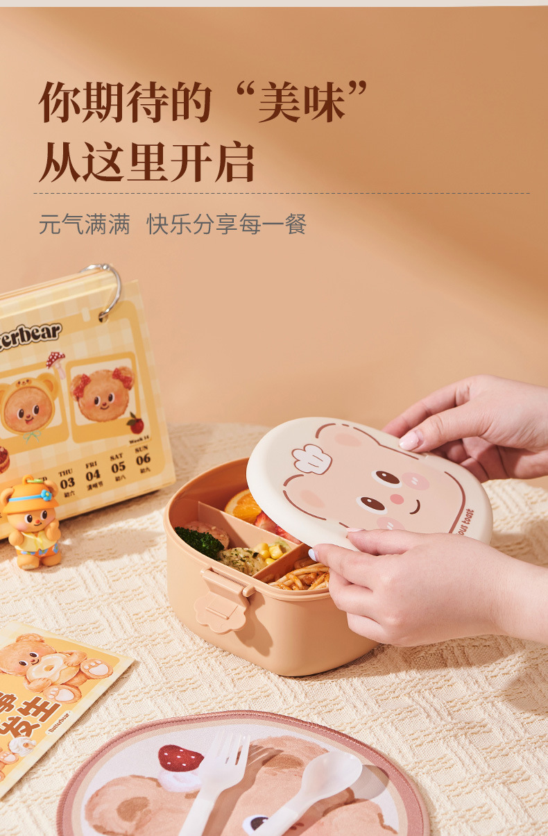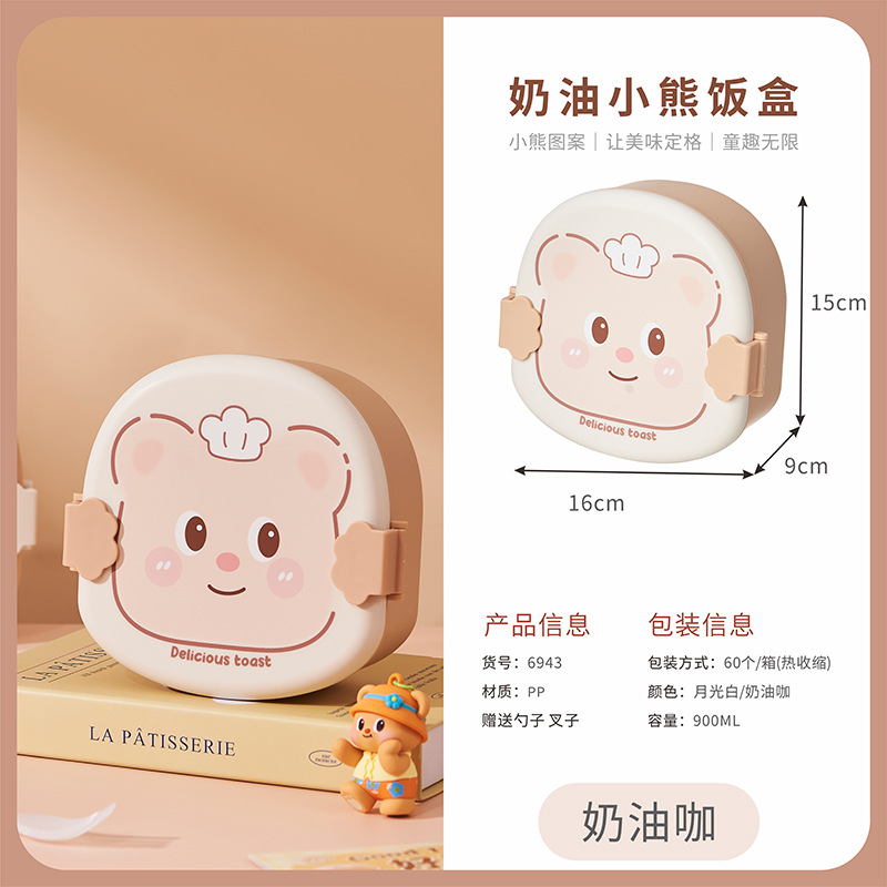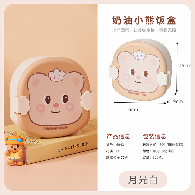 2025 creative cream bear shape lunch box compartment lunch box student cute lunch box household * microwave preservation