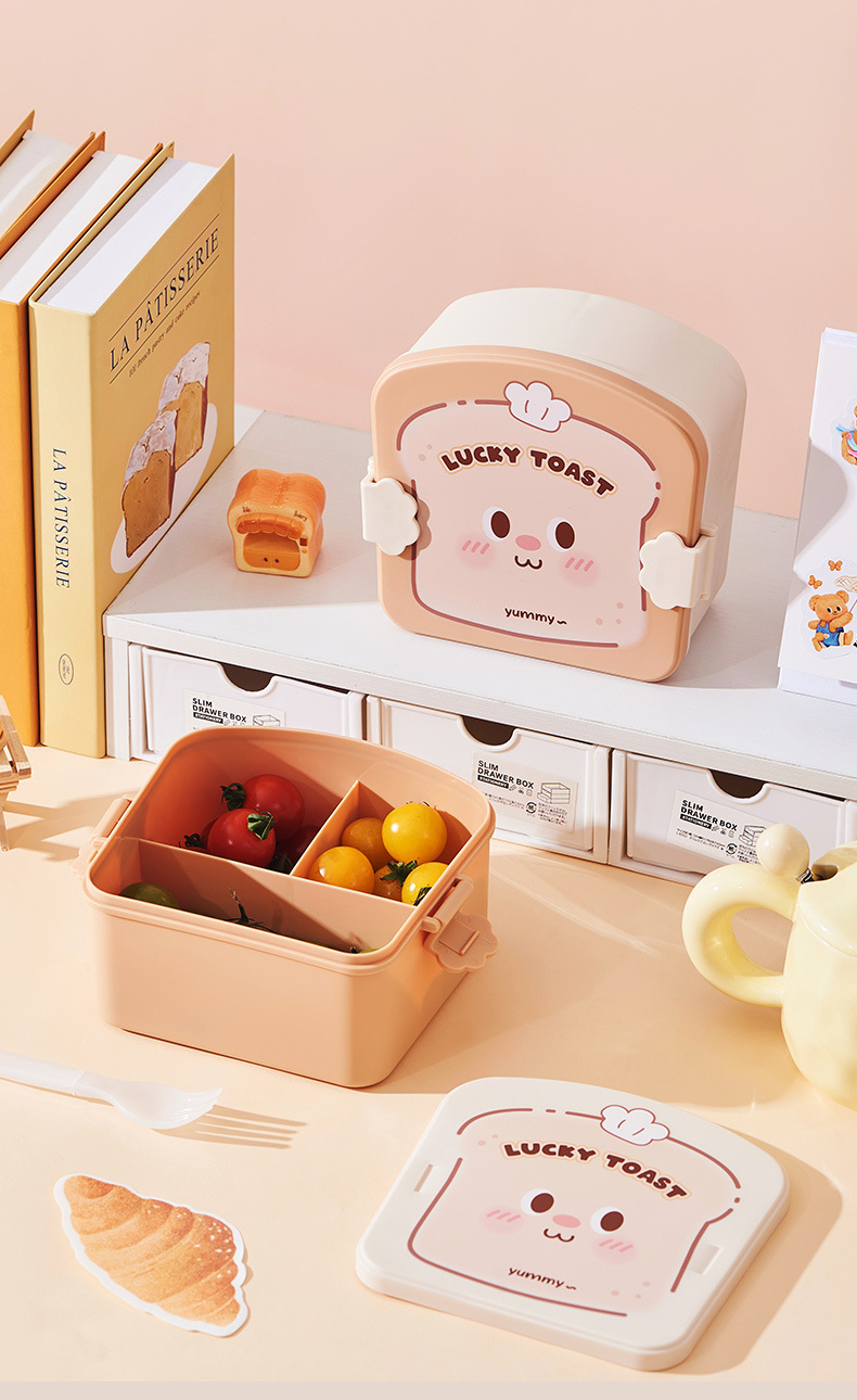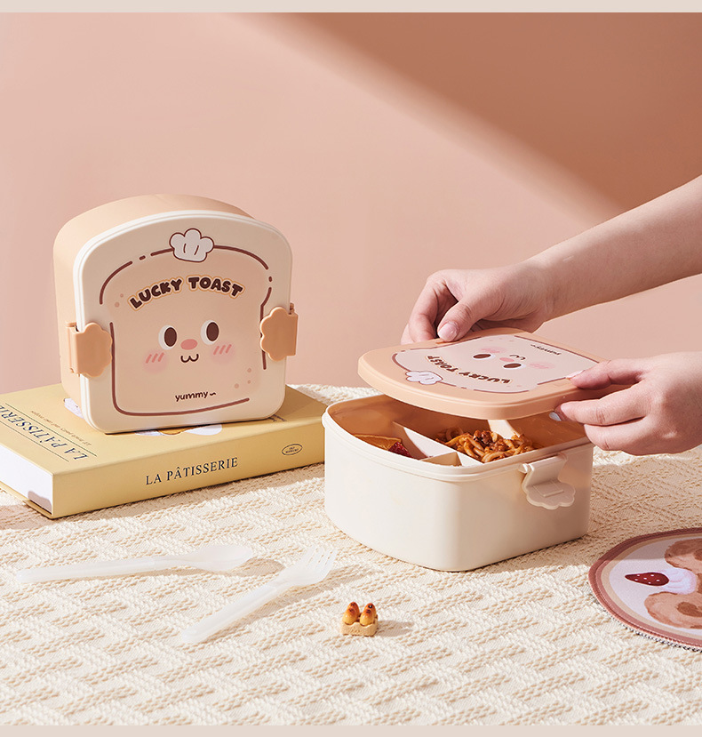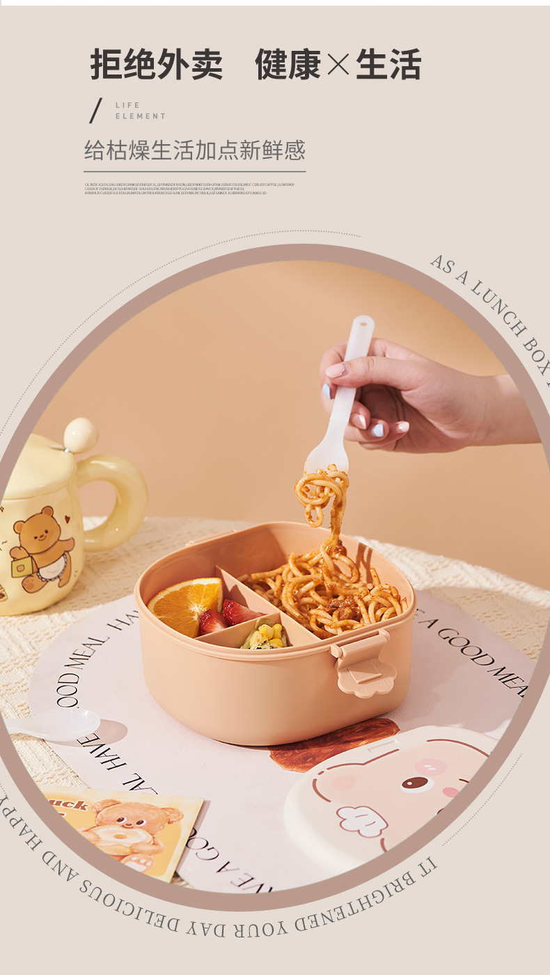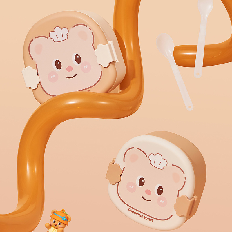 2025 creative cream bear shape lunch box compartment lunch box student cute lunch box household * microwave preservation