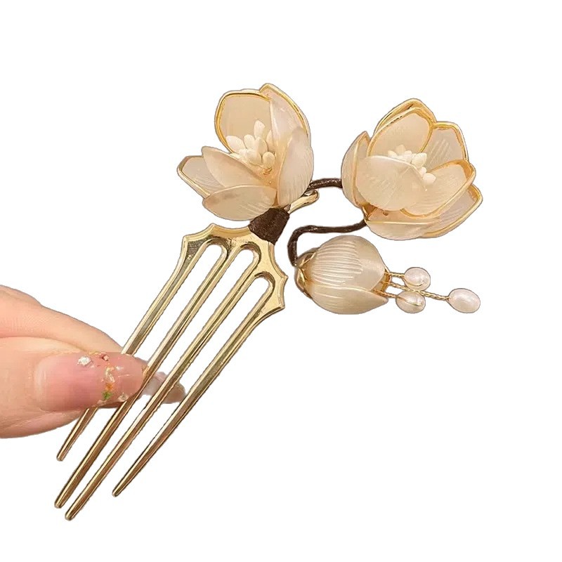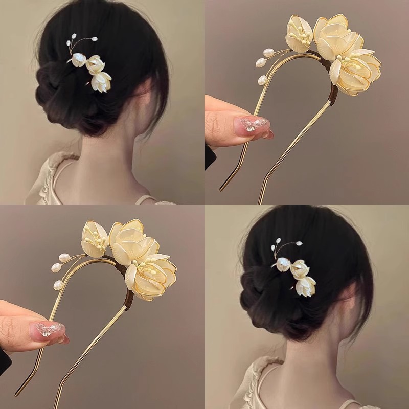 white magnolia hairpin