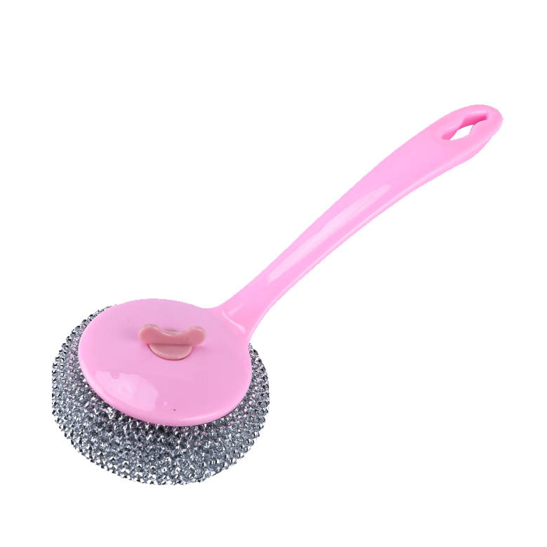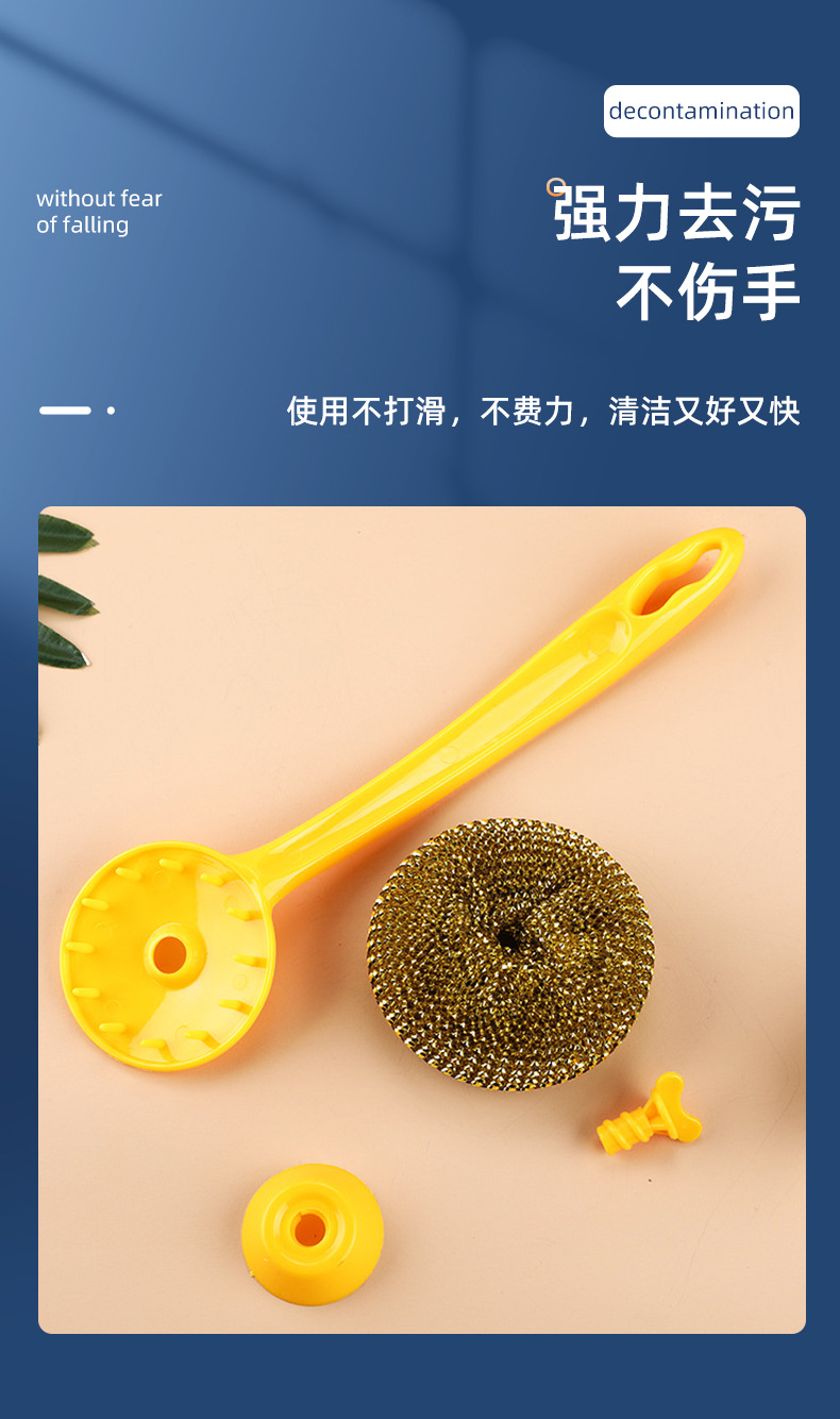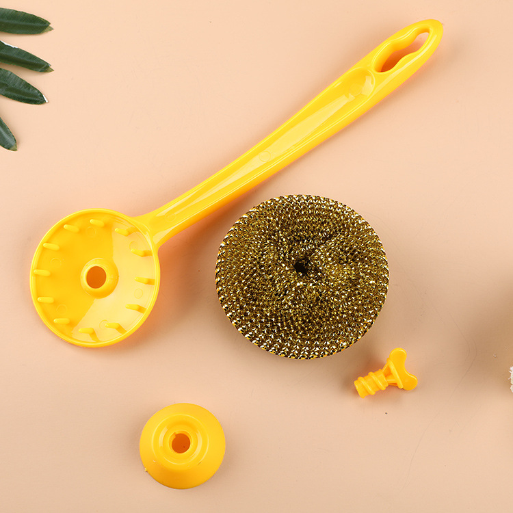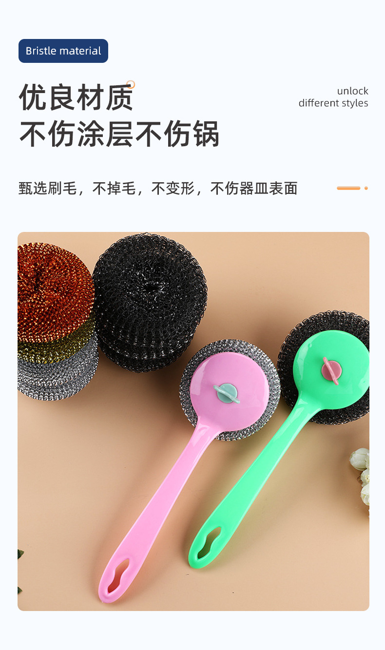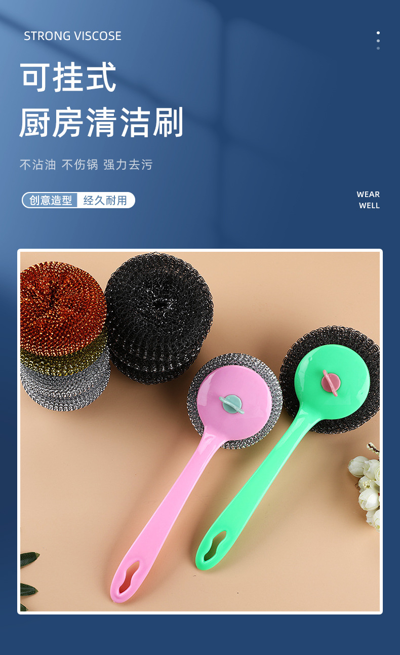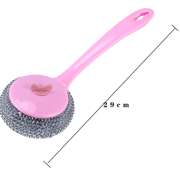 long handle wok brush removable cleaning brush non-stick cooker mesh sink kitchen cleaning ball steel wire ball strong cleaning