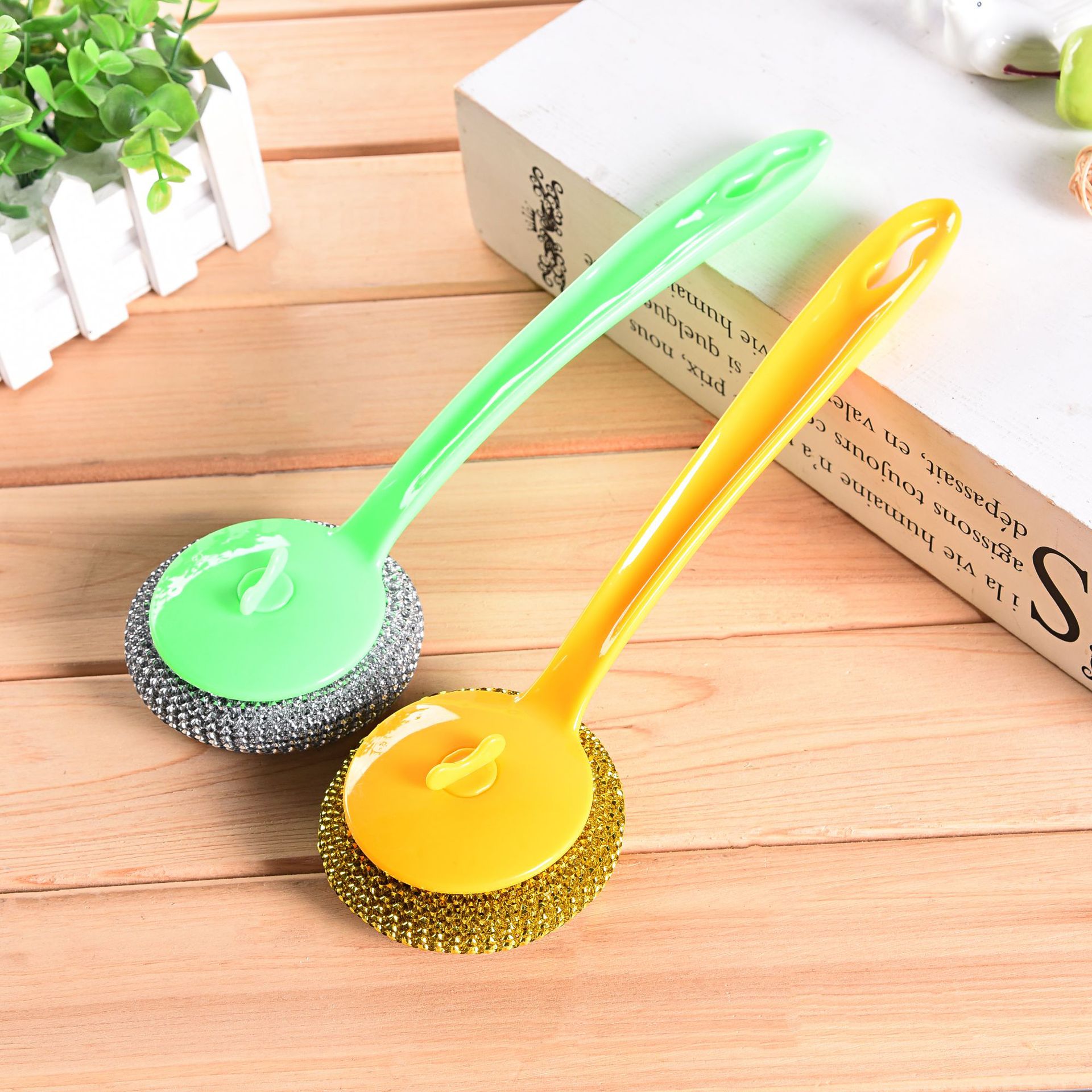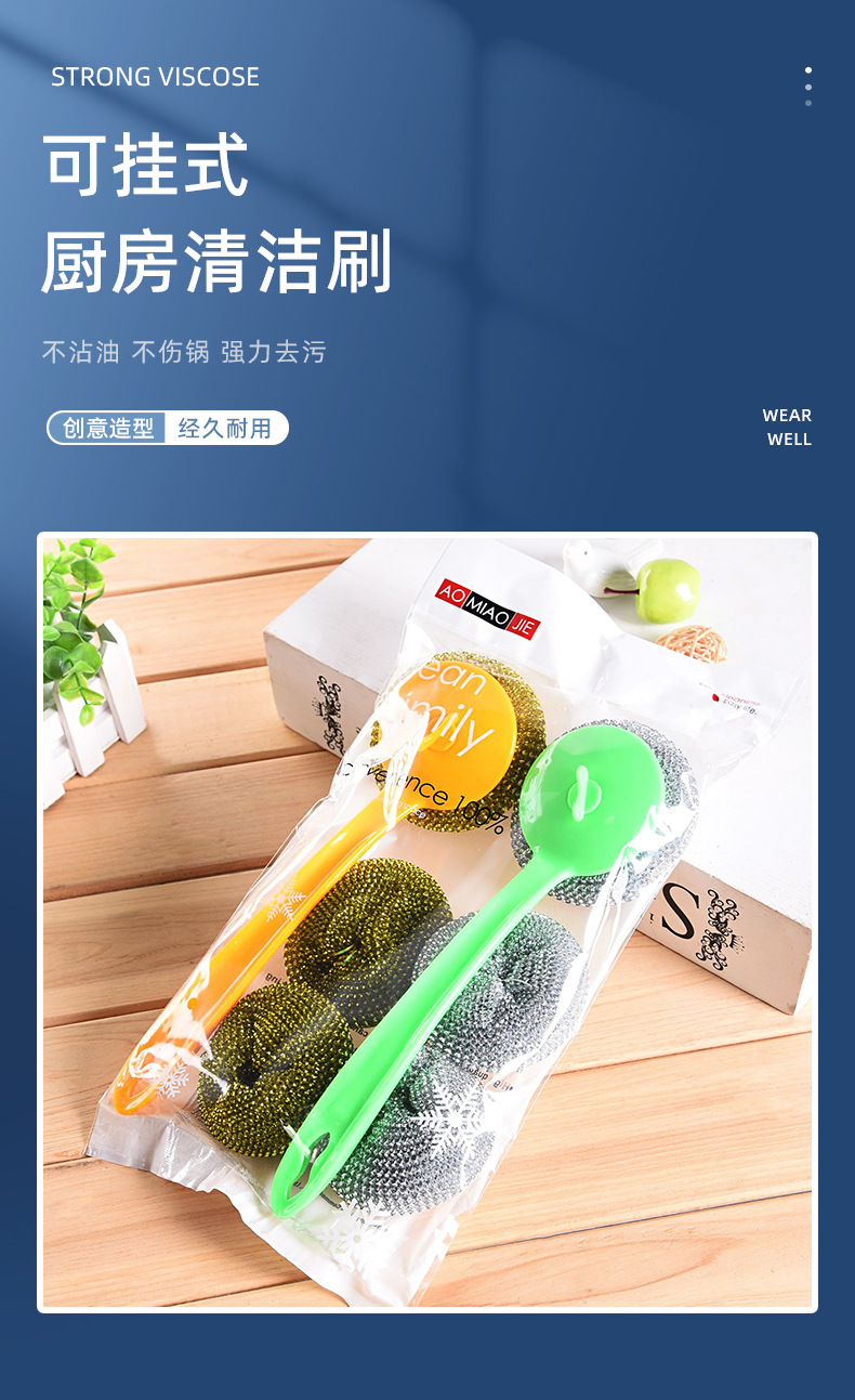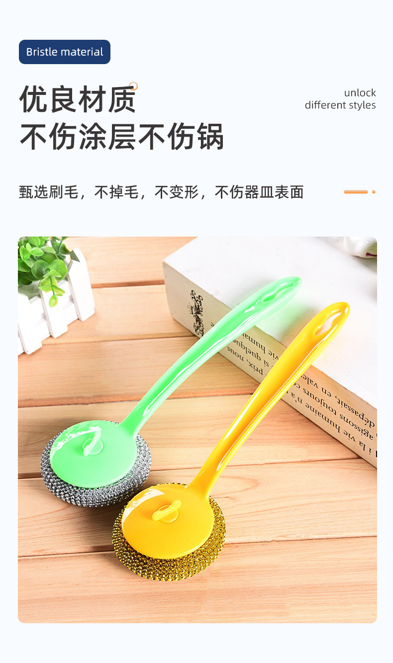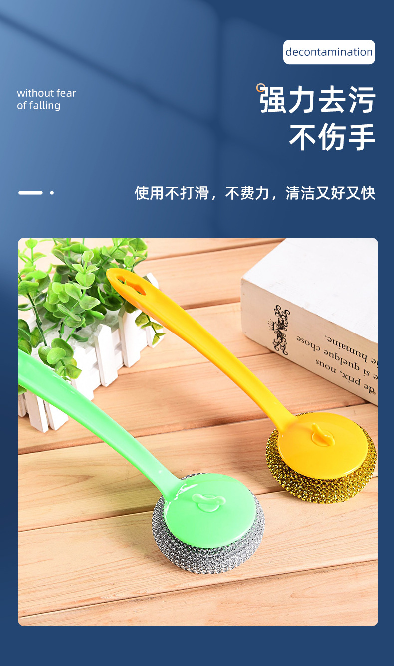 long handle oil removal cleaning wok brush with steel wire ball brush dishwashing brush cleaning tape cleaning ball set stainless steel wire