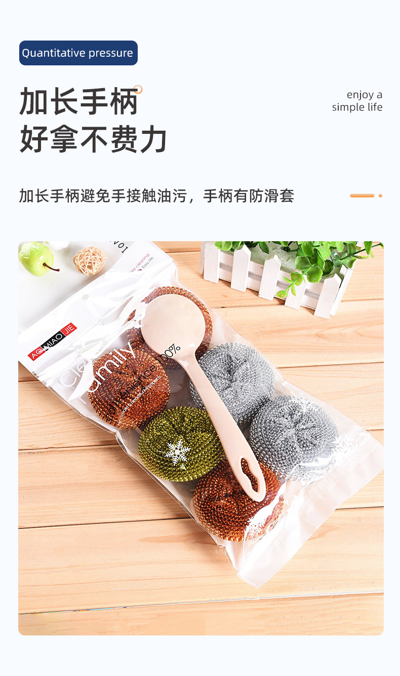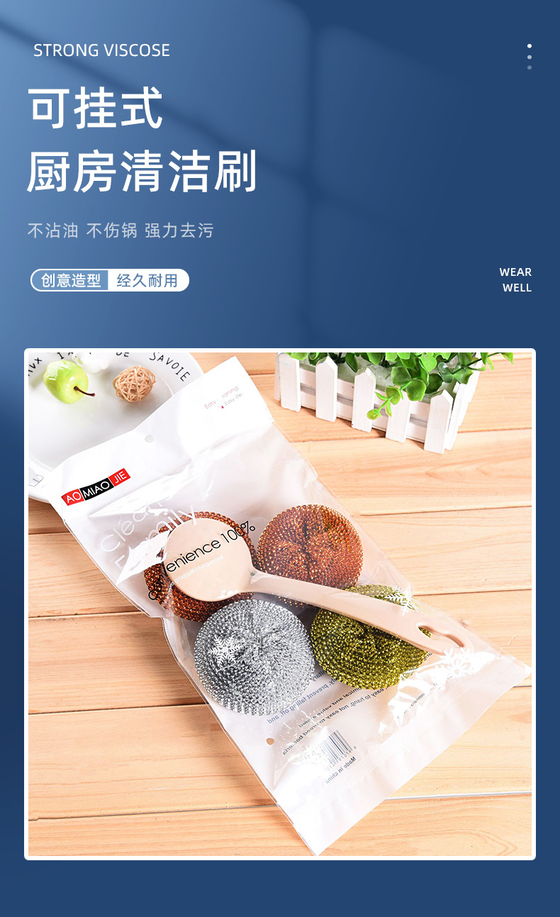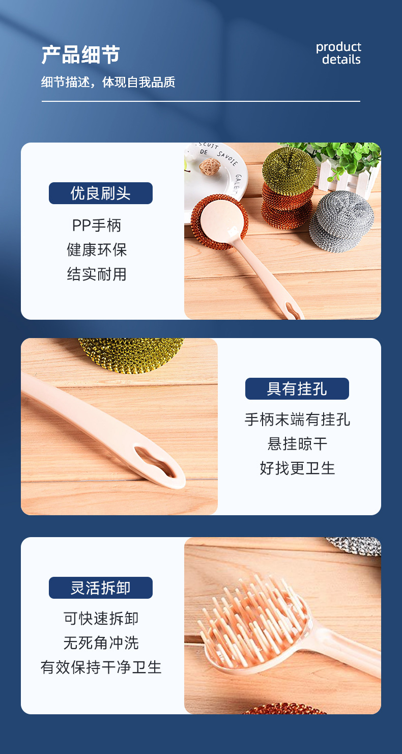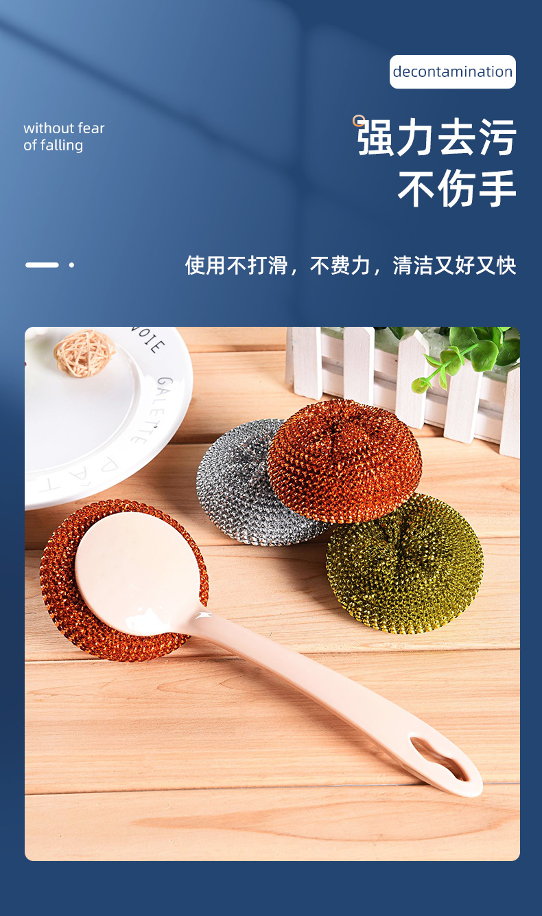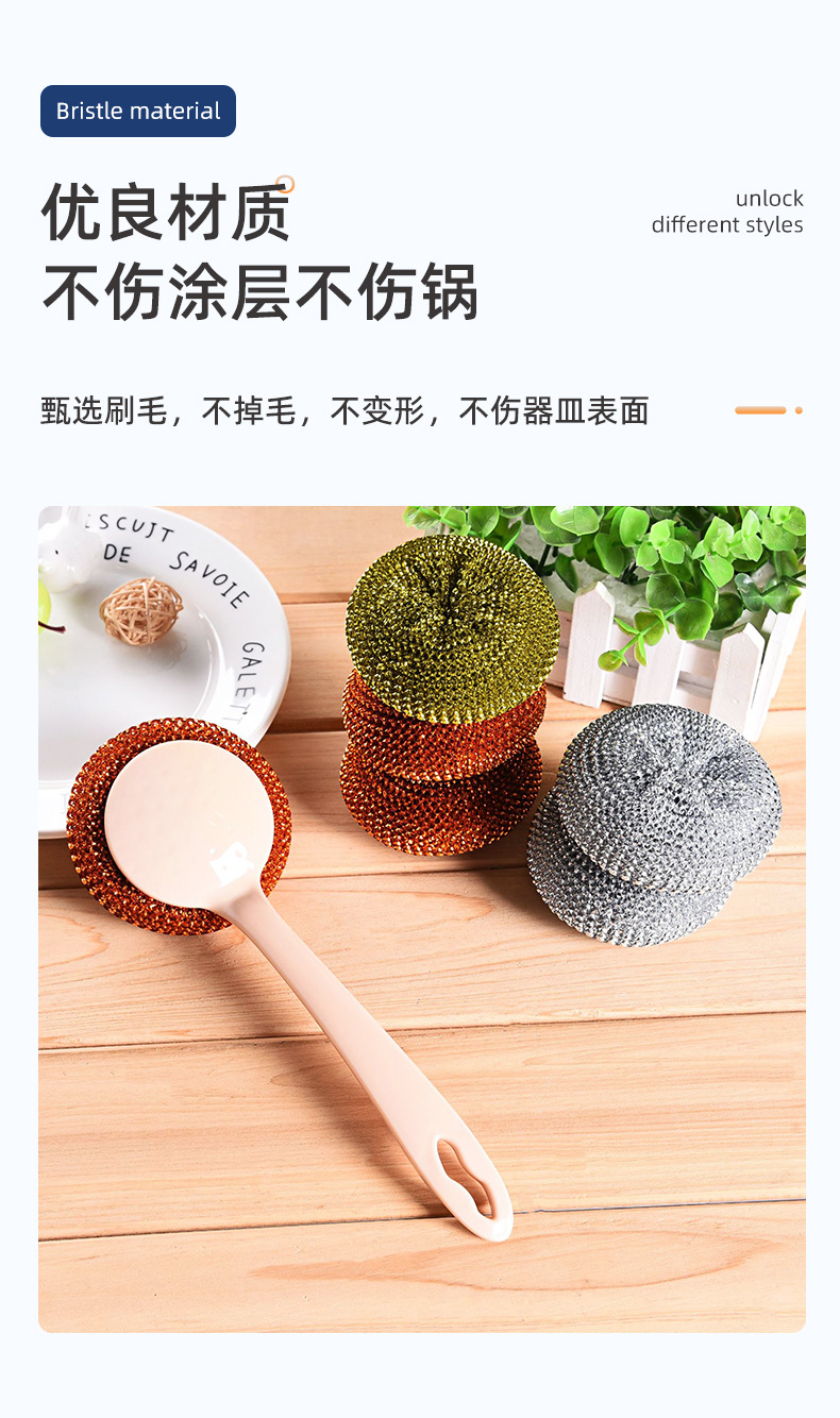 long handle oil removal cleaning wok brush with steel wire ball brush dish brush removable cleaning brush with cleaning ball set