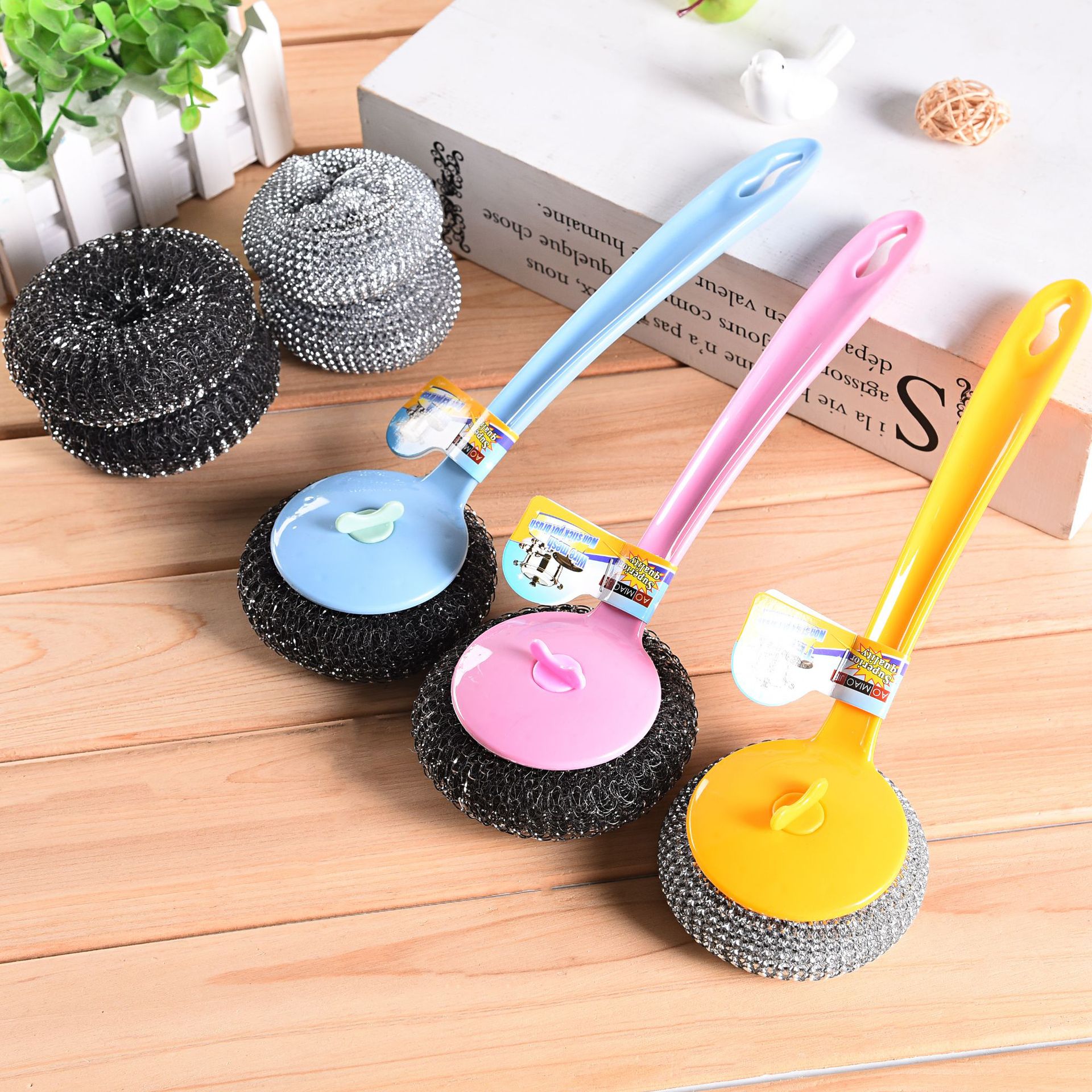 brush non-stick cooker mesh wok brush sink kitchen cleaning ball factory direct sales wholesale steel wire ball brush oil removal