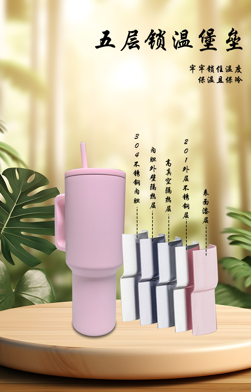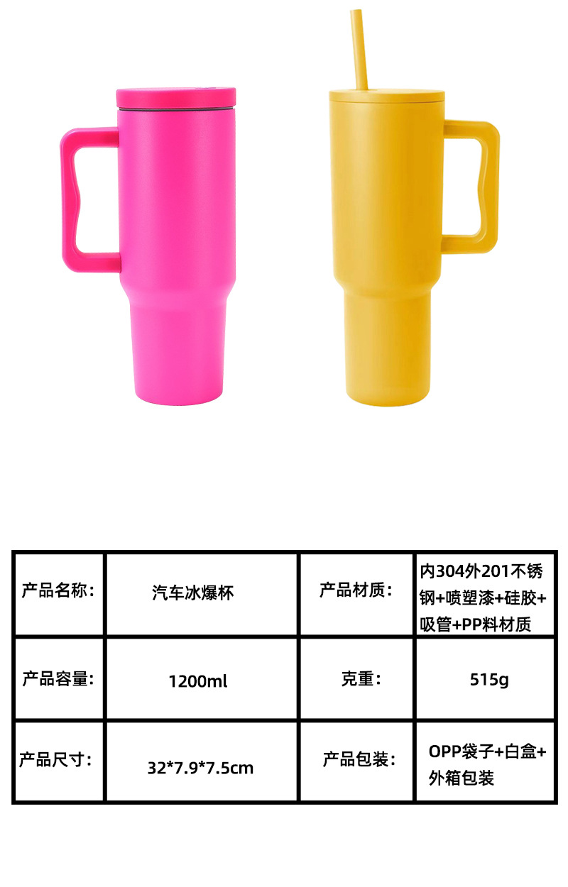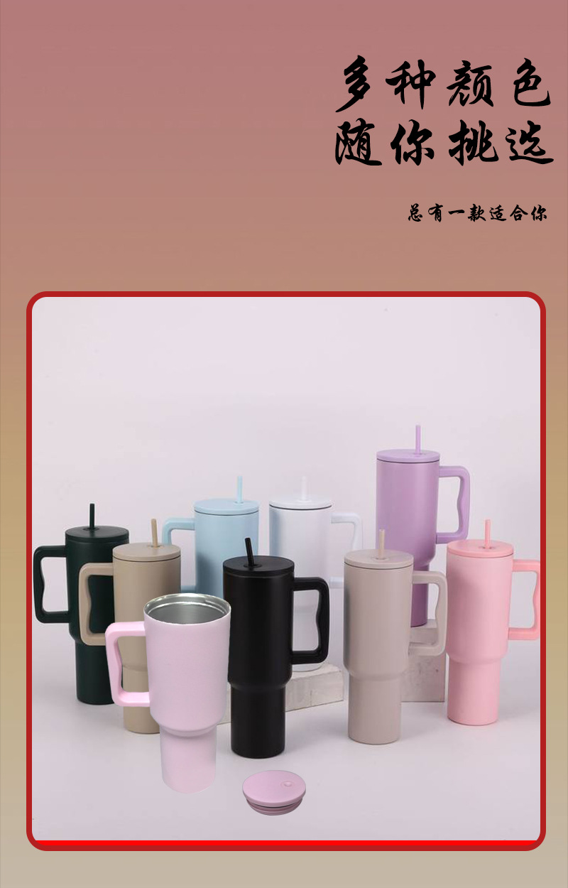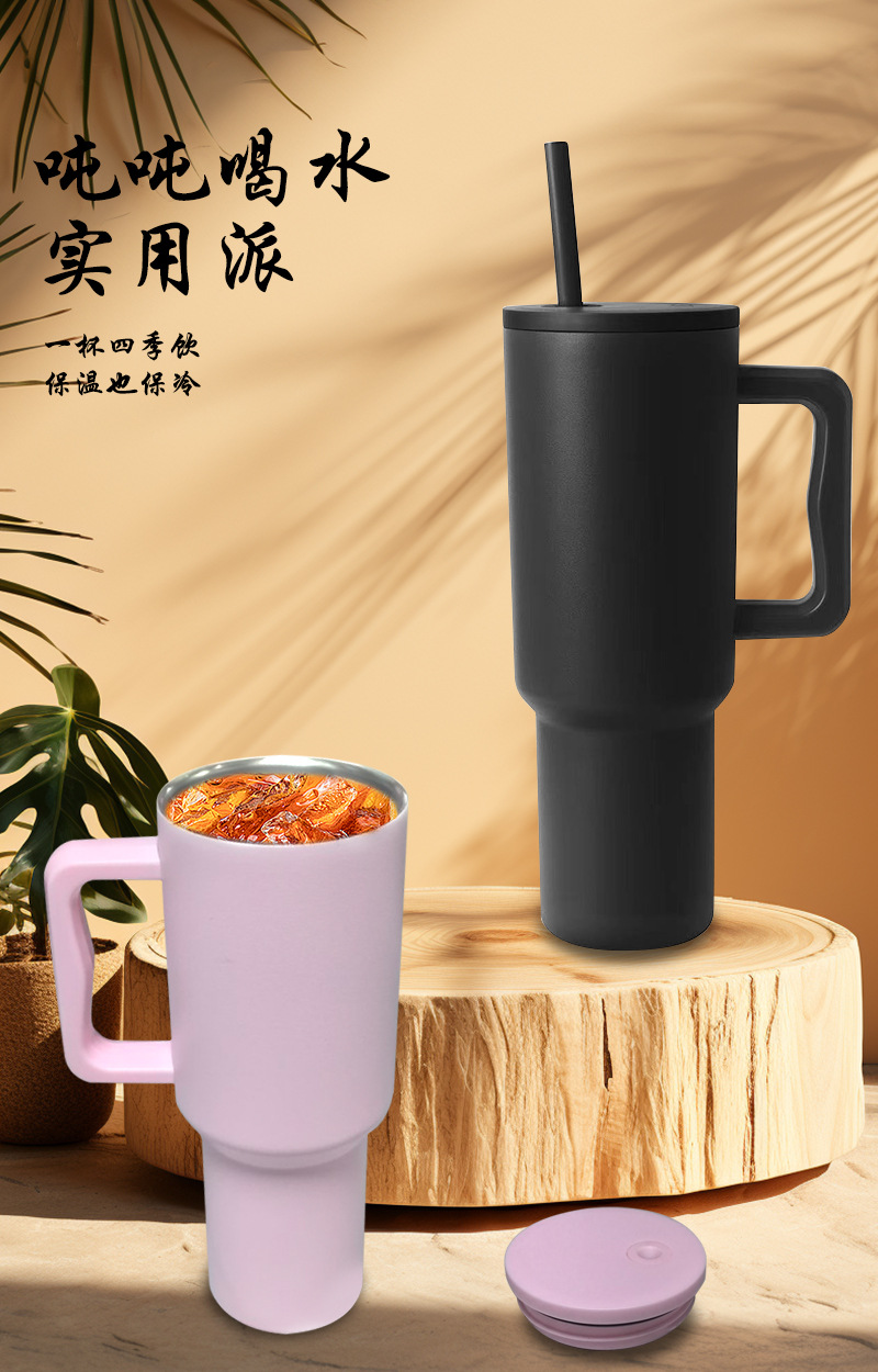 小红书热销40oz手柄杯大容量304不锈钢汽车杯吸管冰霸杯一件代发