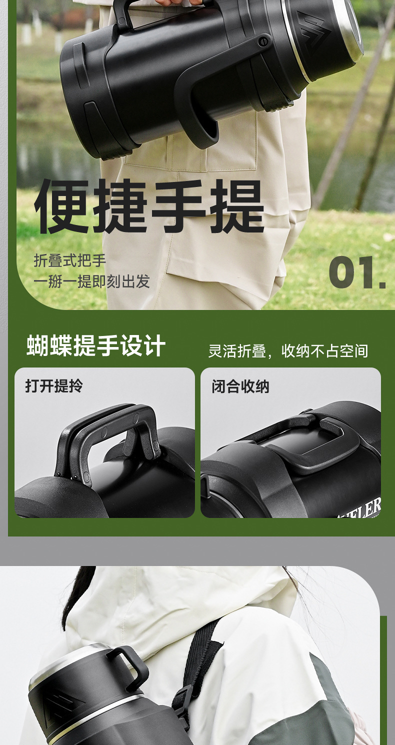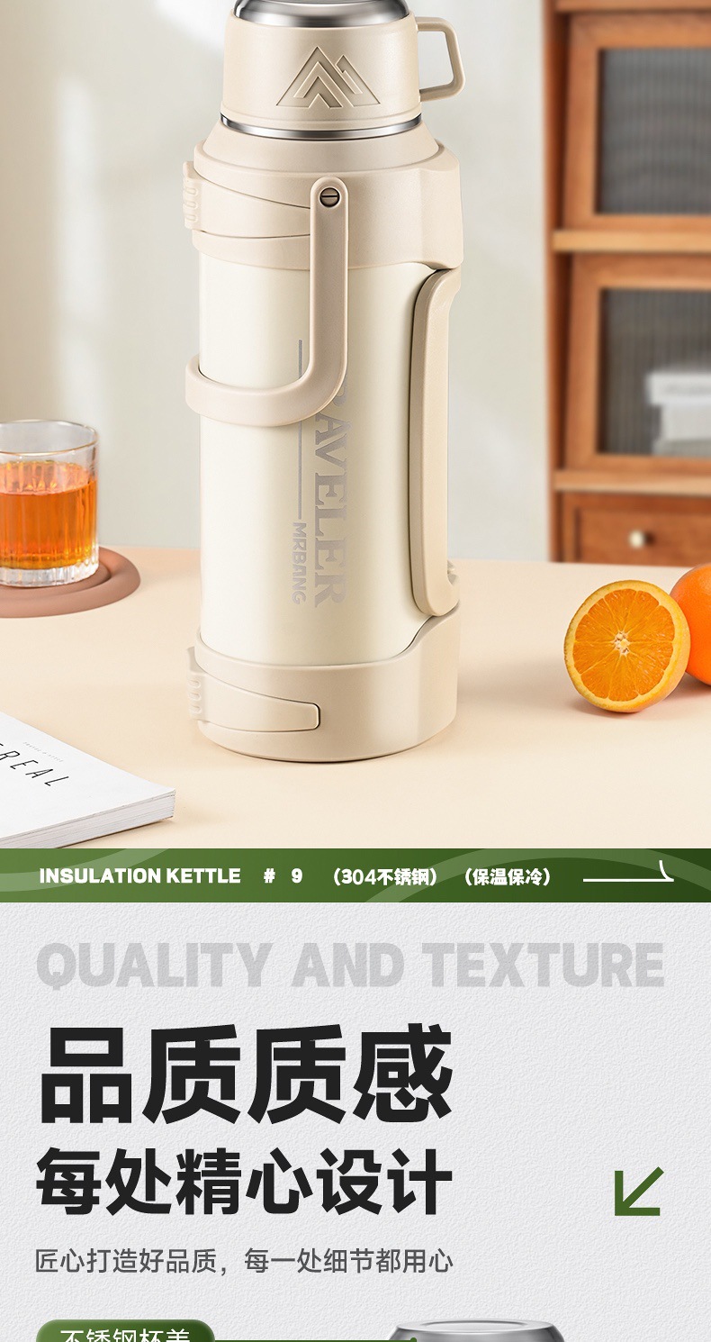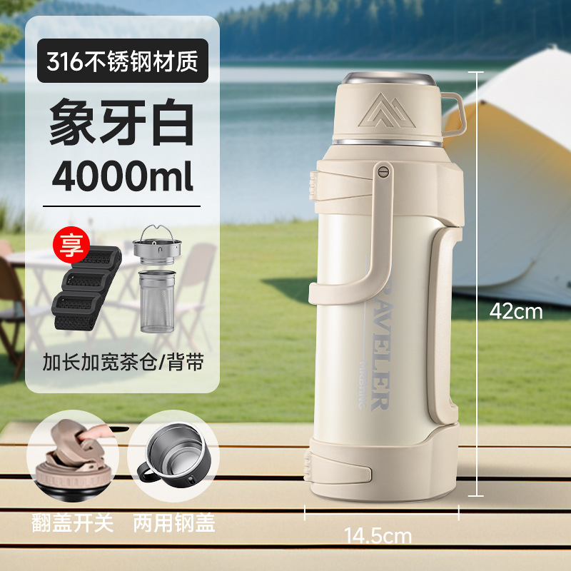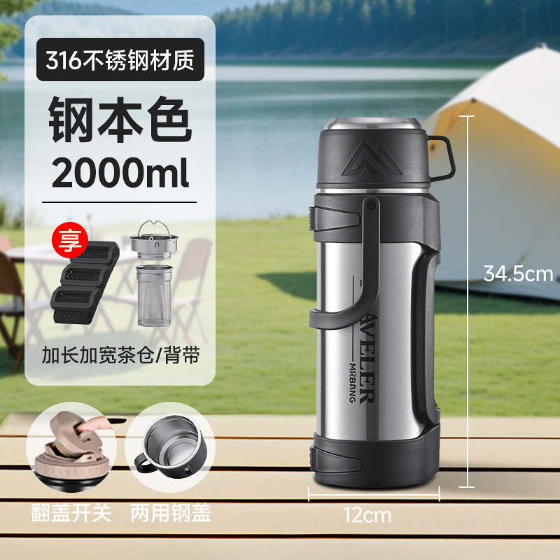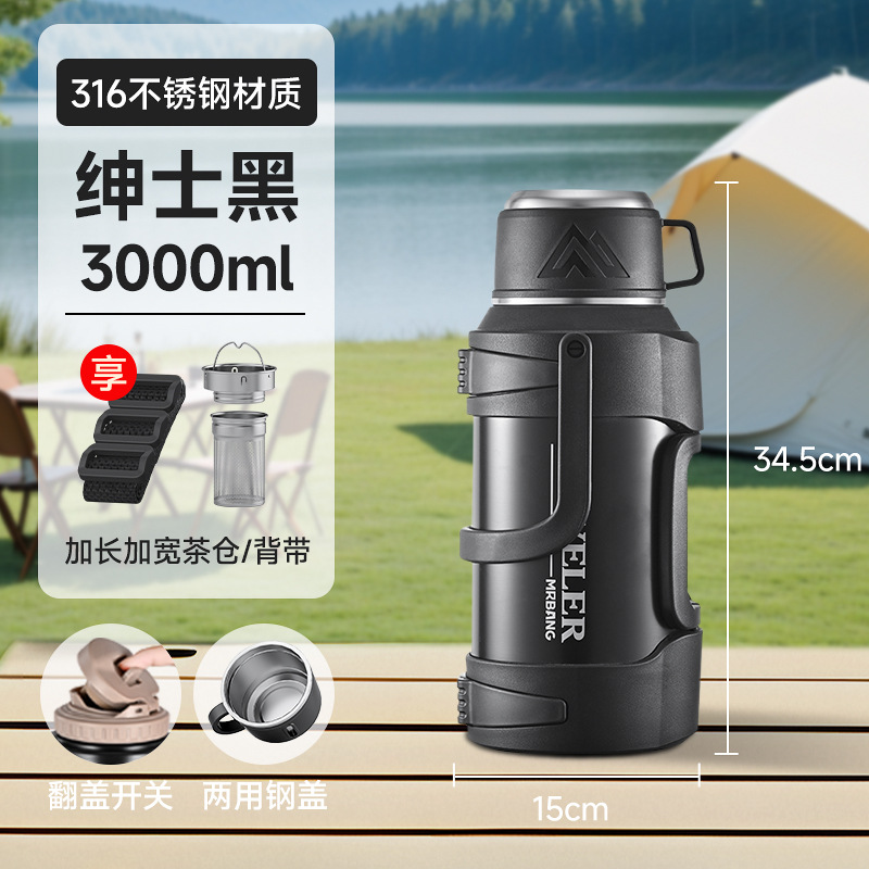 large capacity 316 stainless steel thermal pot portable household thermos outdoor car strap travel pot wholesale