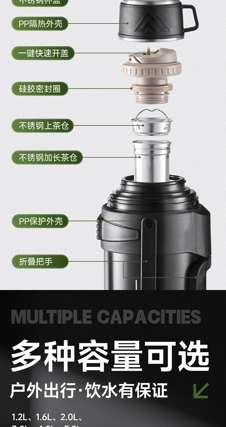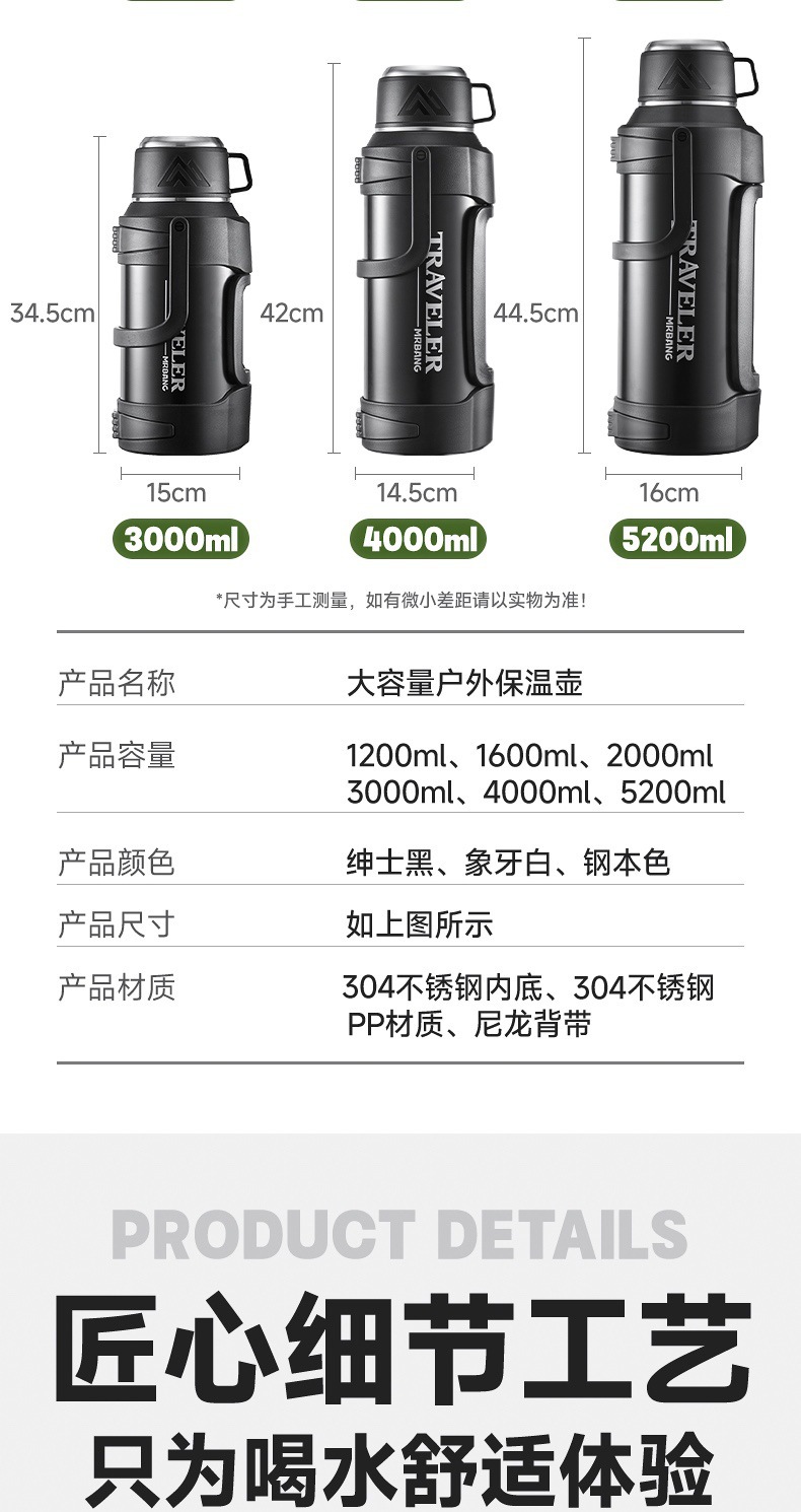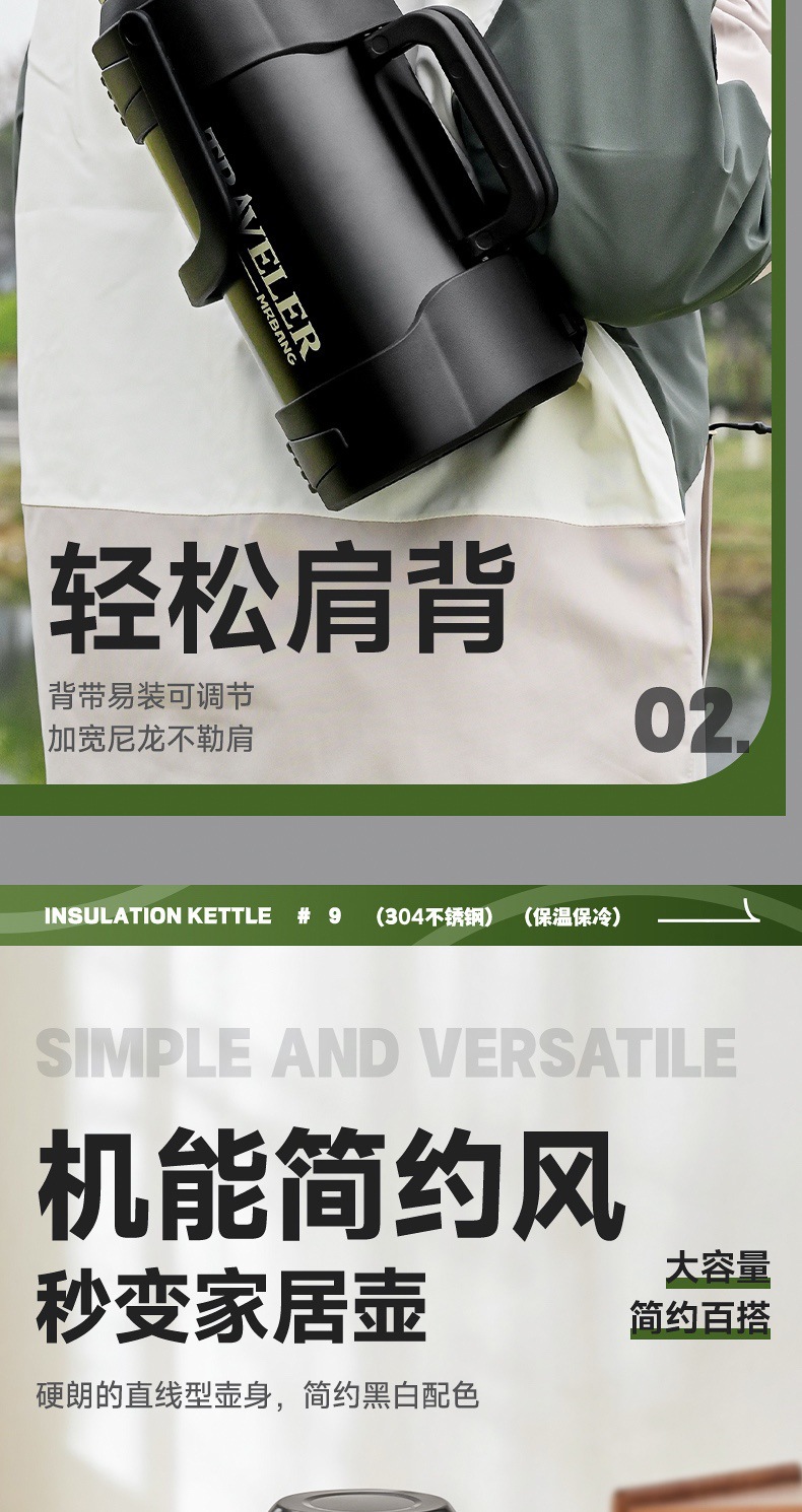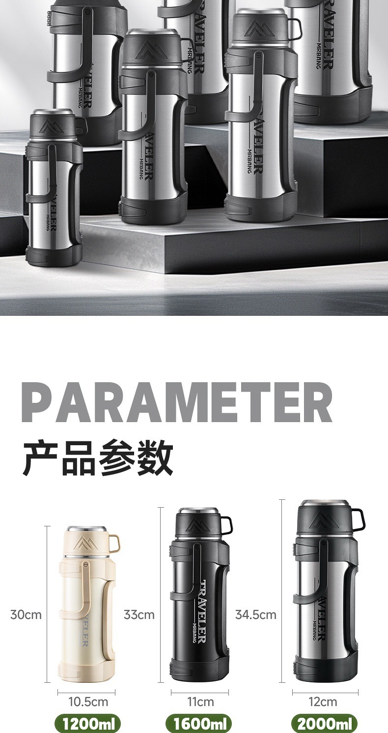 large capacity 316 stainless steel thermal pot portable household thermos outdoor car strap travel pot wholesale