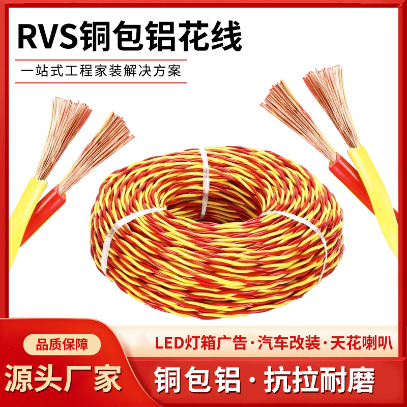 家用电线软线RVS铜包铝花线 两芯双绞线消防照明广告灯电源线