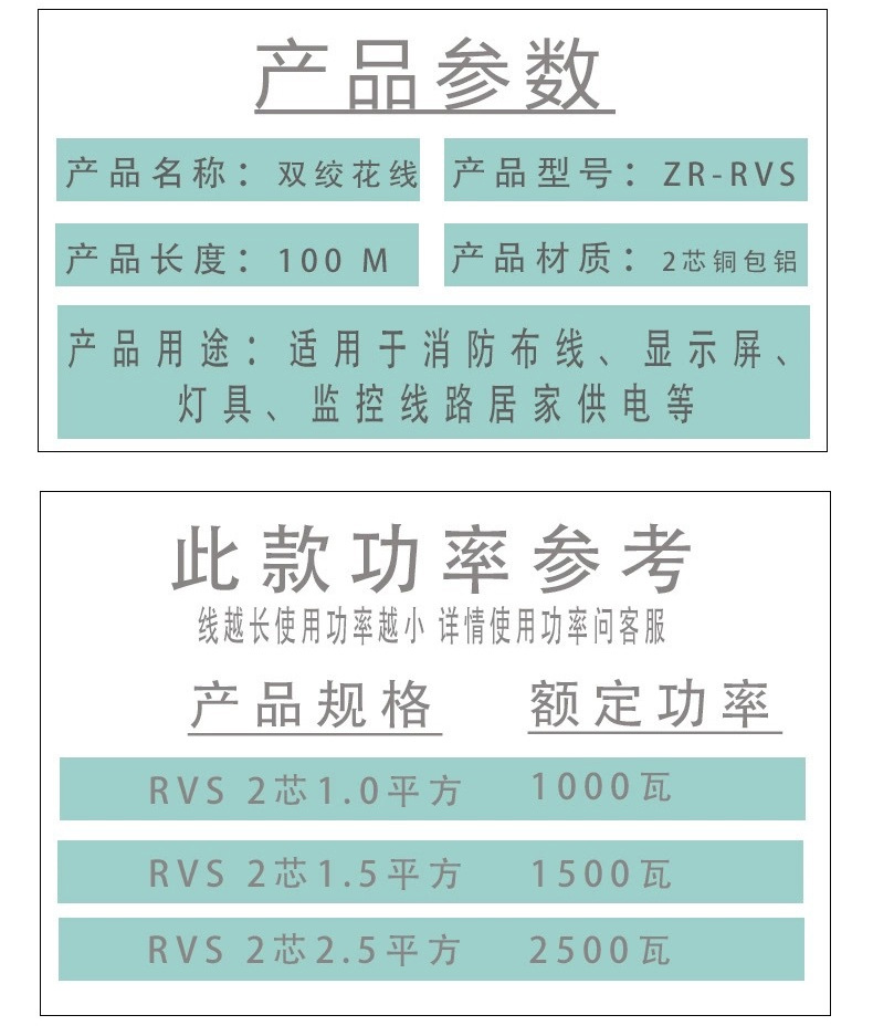 | 【产品名称】:RVS铜包铝花线 | 【芯数】:2 |