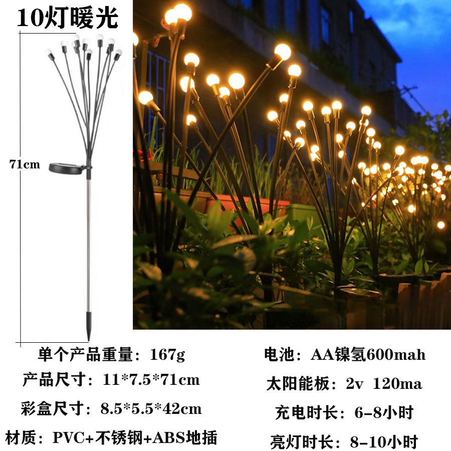 solar firefly lamp high-equipped with 10-head warm white dual-mode constant light + flashing
