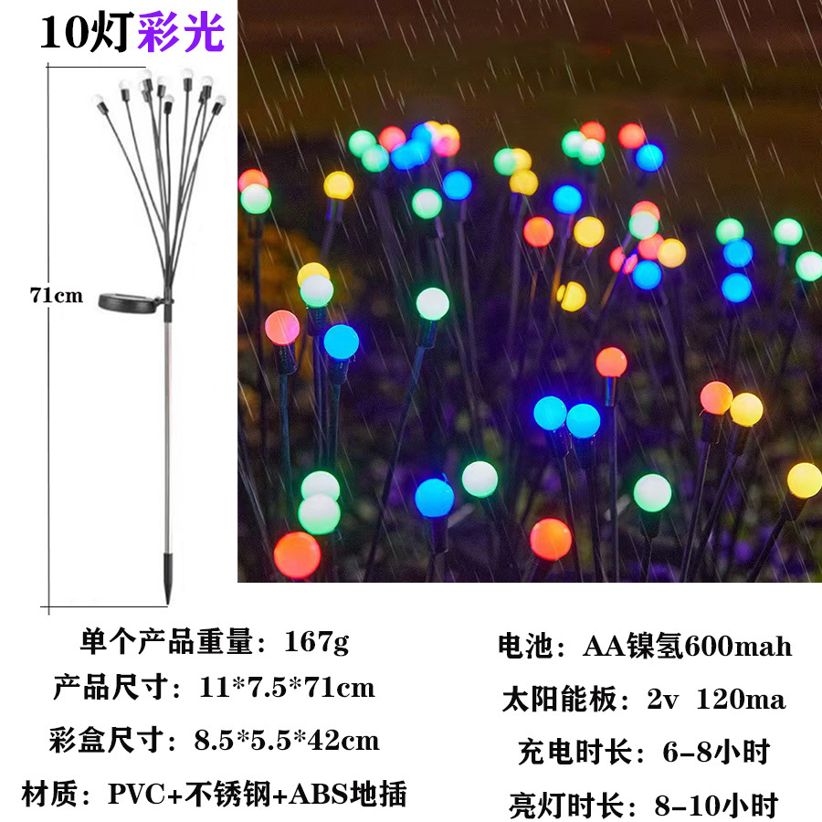 solar firefly lamp high-equipped with 10-head color light dual-mode constant light + flashing