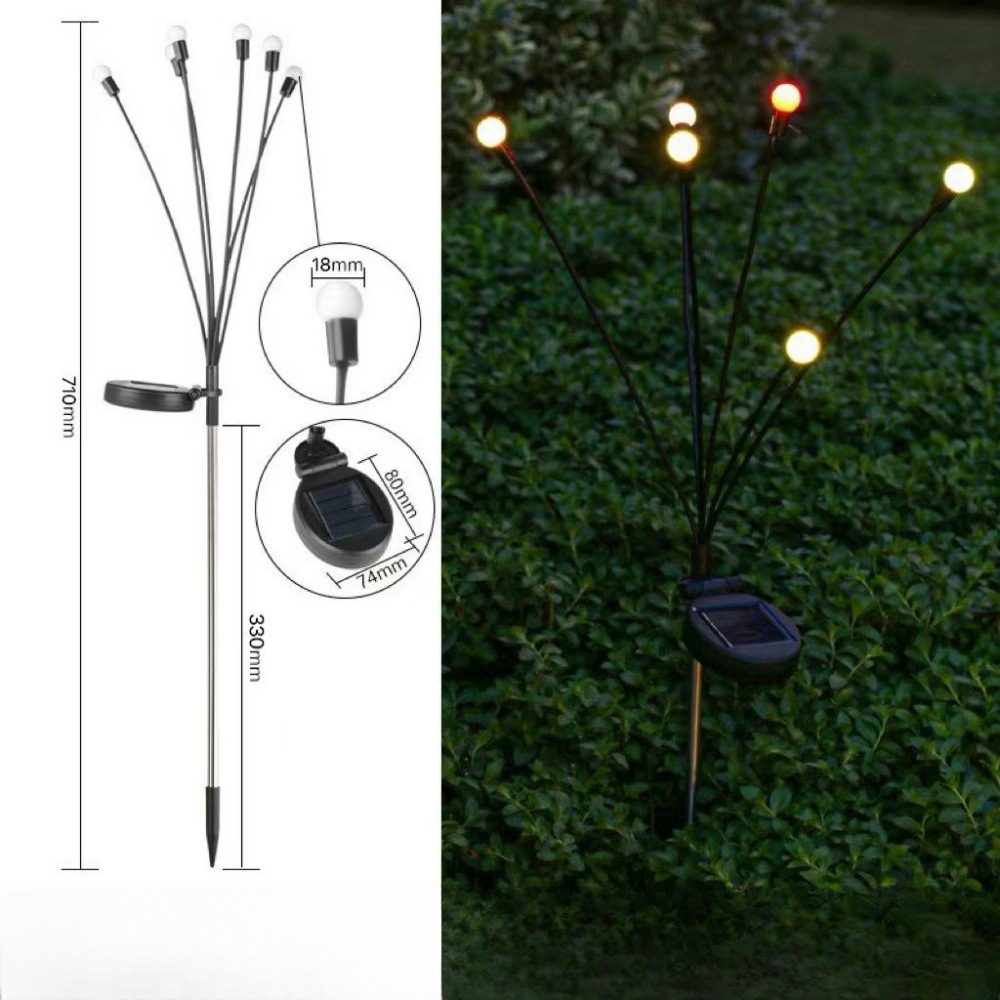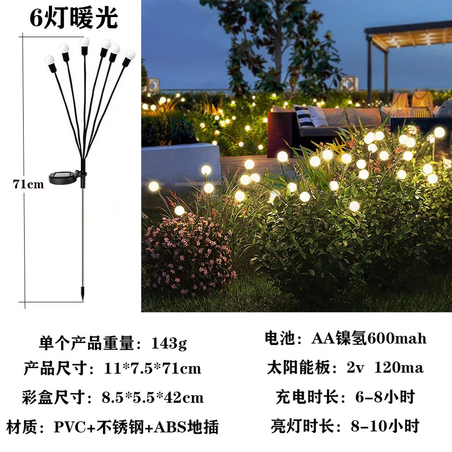 solar firefly lamp high-equipped 6-head warm white dual-mode constant light + flashing