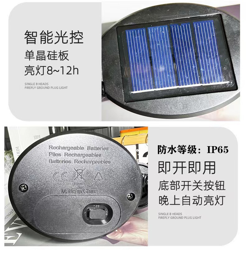 solar firefly lamp high-equipped 8-head warm white dual-mode constant light + flashing