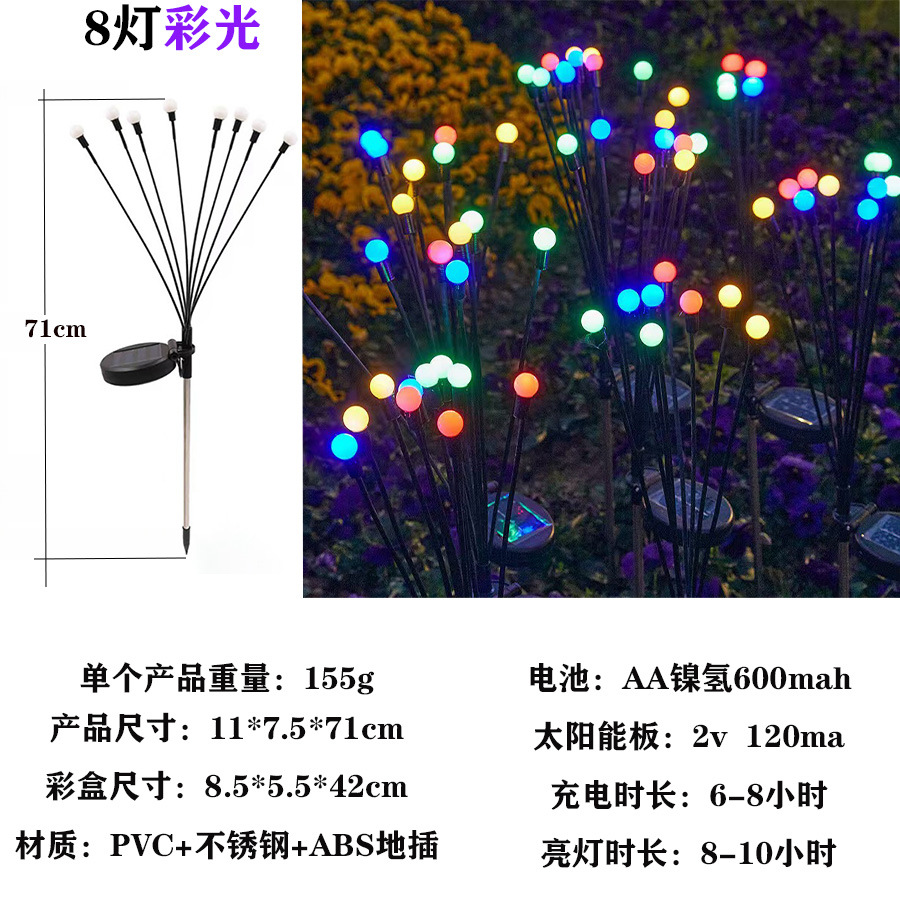 solar firefly lamp high-equipped with 8-head color light dual-mode constant light + flashing