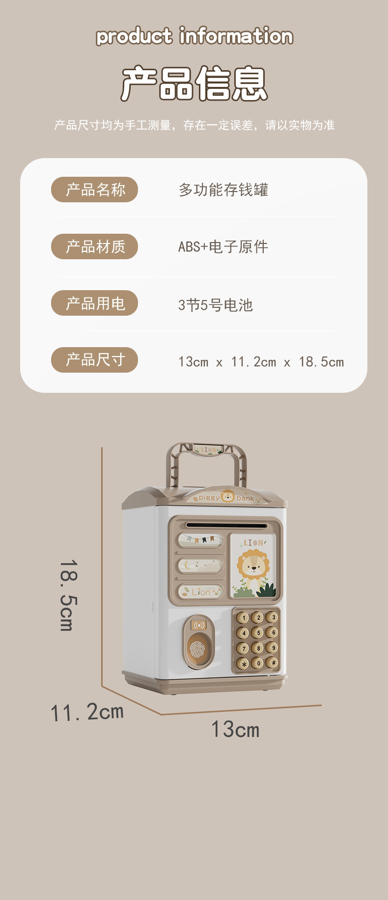 产品尺寸:13*11*19.5cm