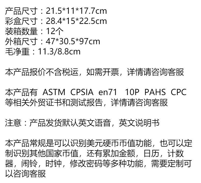 | 21.5*11*17.7cm | CN¥ 0.0 | 3000 piece available |