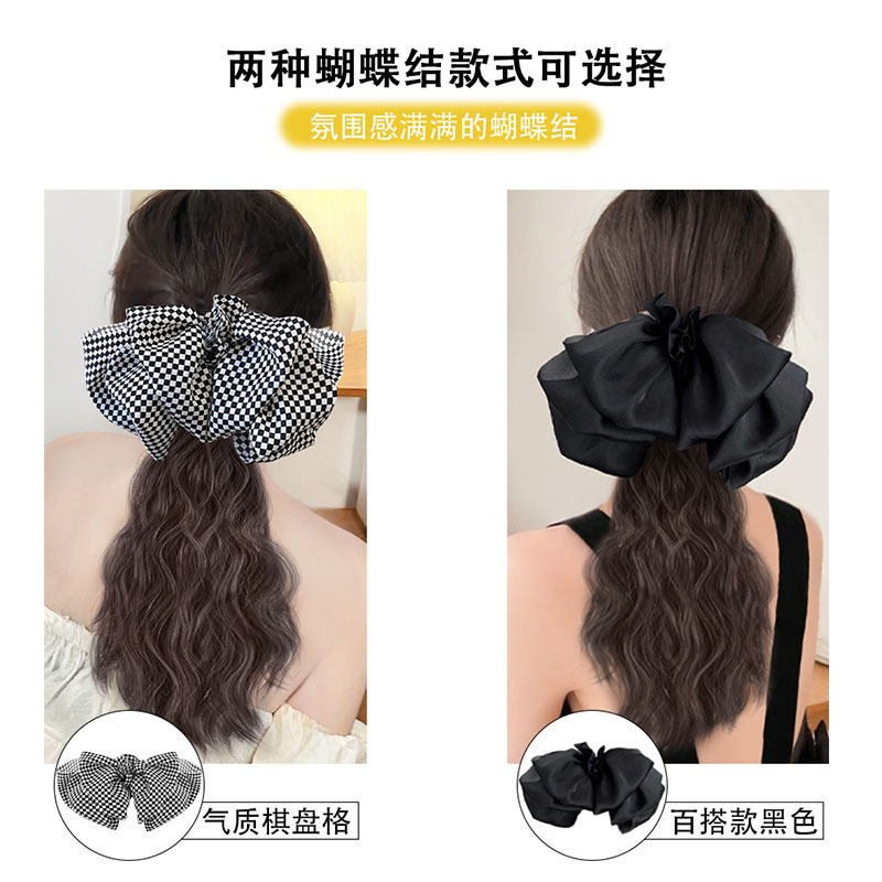 checkerboard plaid bow + cloud ponytail [brown black]]