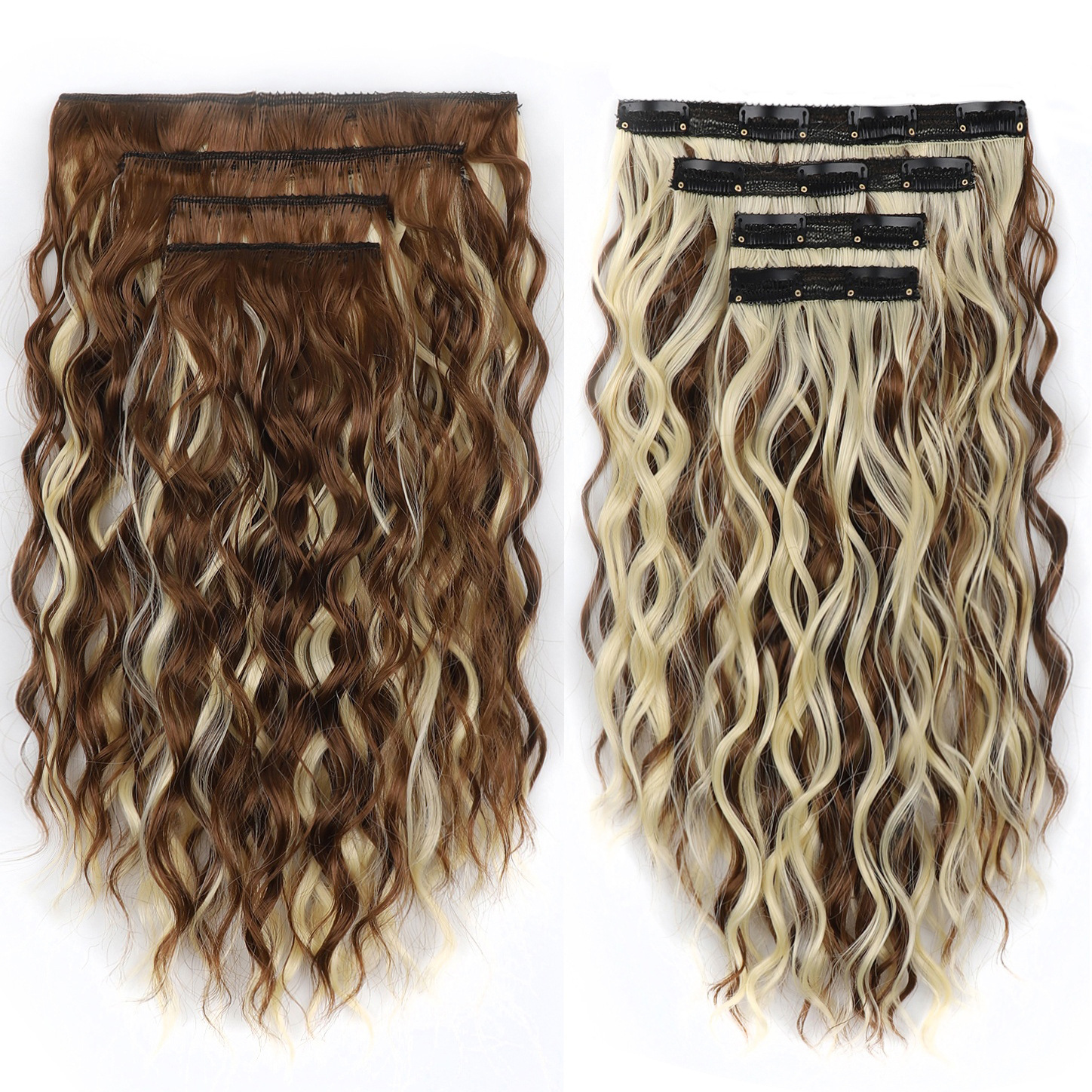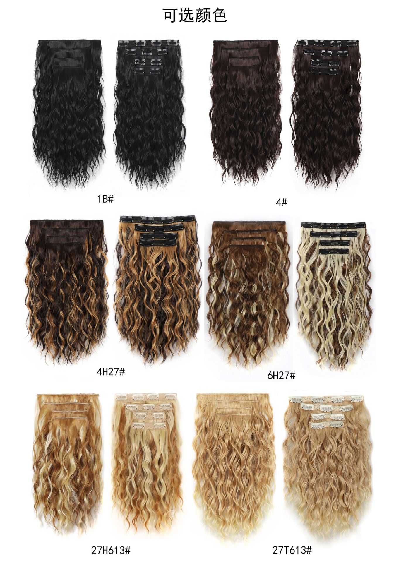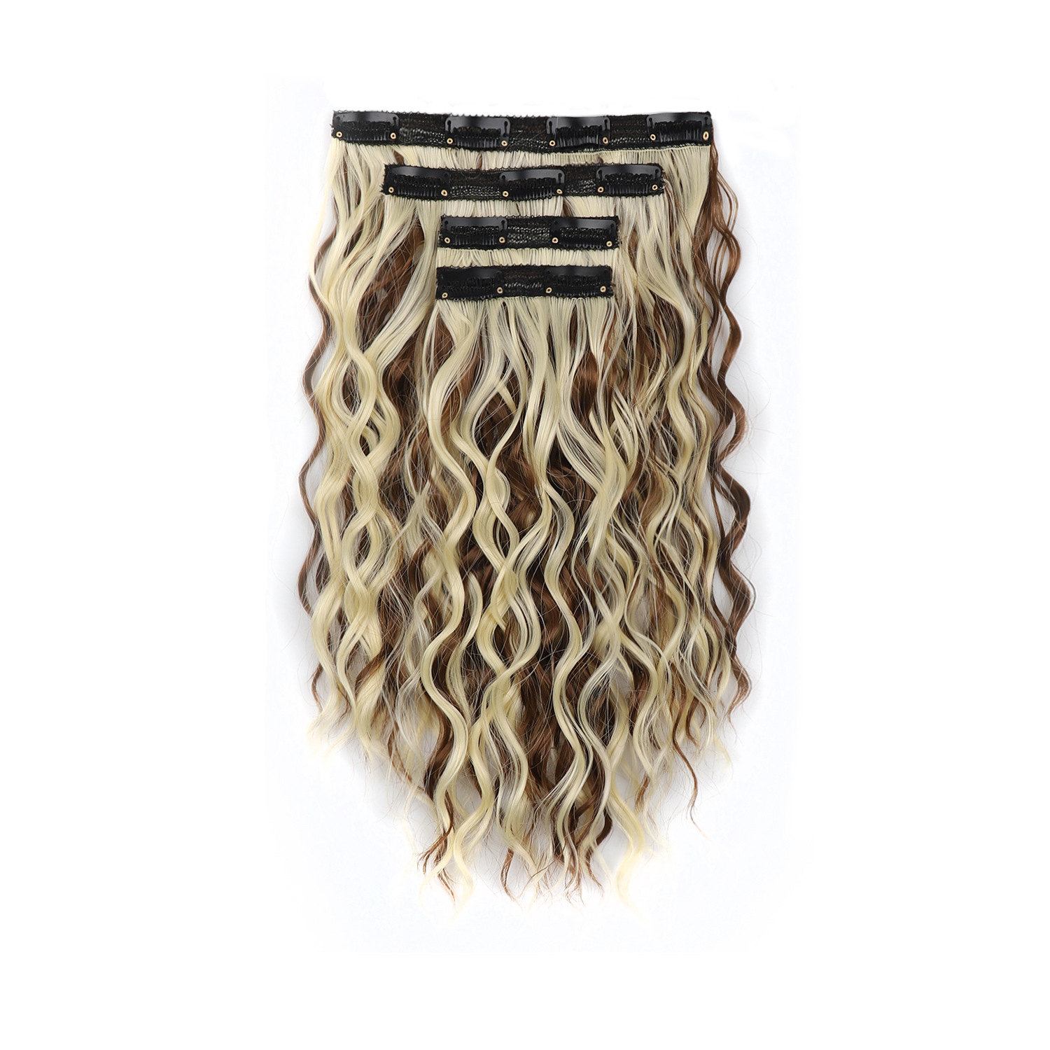 产品名称:欧美白人水波纹短发接发片 水波卷假发4件套 卡子发短发套装