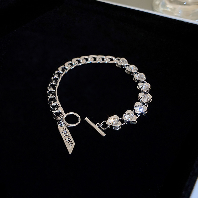 silver-heart-shaped zircon bracelet.