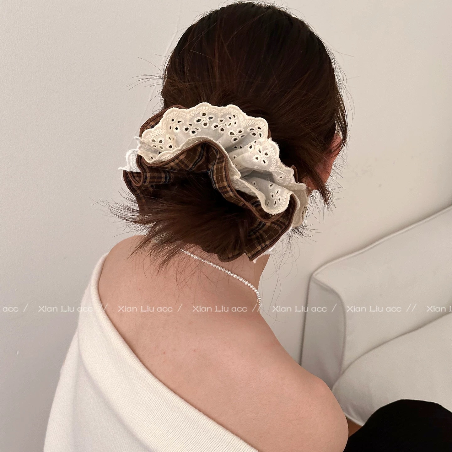 34# milky white lace yarn pearl bow about 15cm