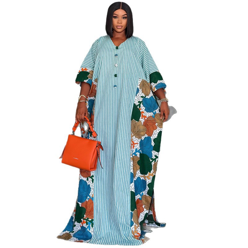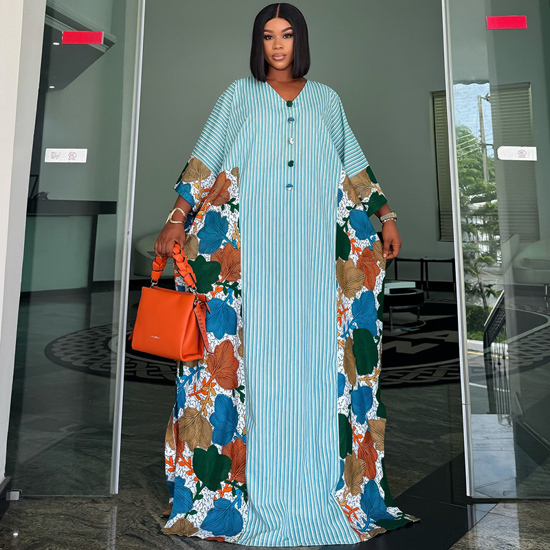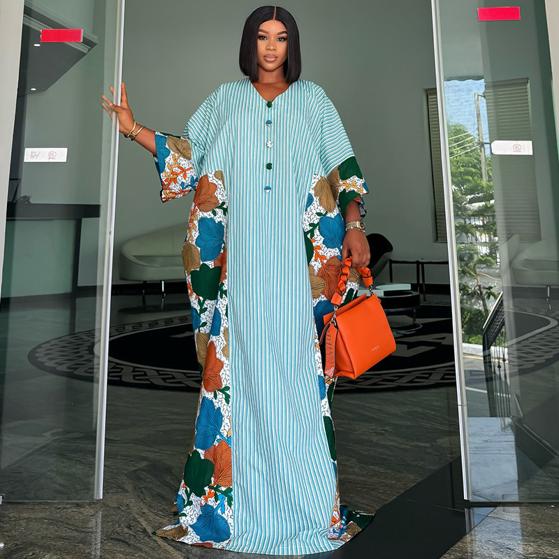 europe and america cross border women's clothing 2026 spring new fashion fresh v-neck striped loose printed color matching dress dress