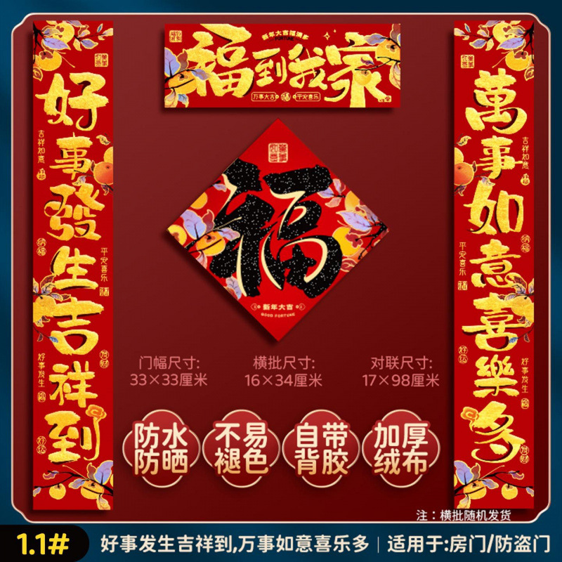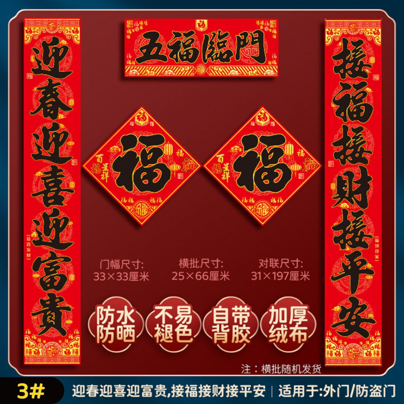 [1.2#-five blessings] flannel couplet + [fu character 03] flannel door width