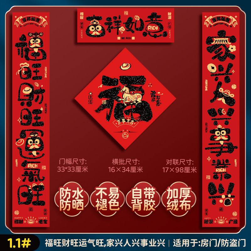 [1.8#-happy new year] flannel couplet + [fu character 01] flannel door width * 2