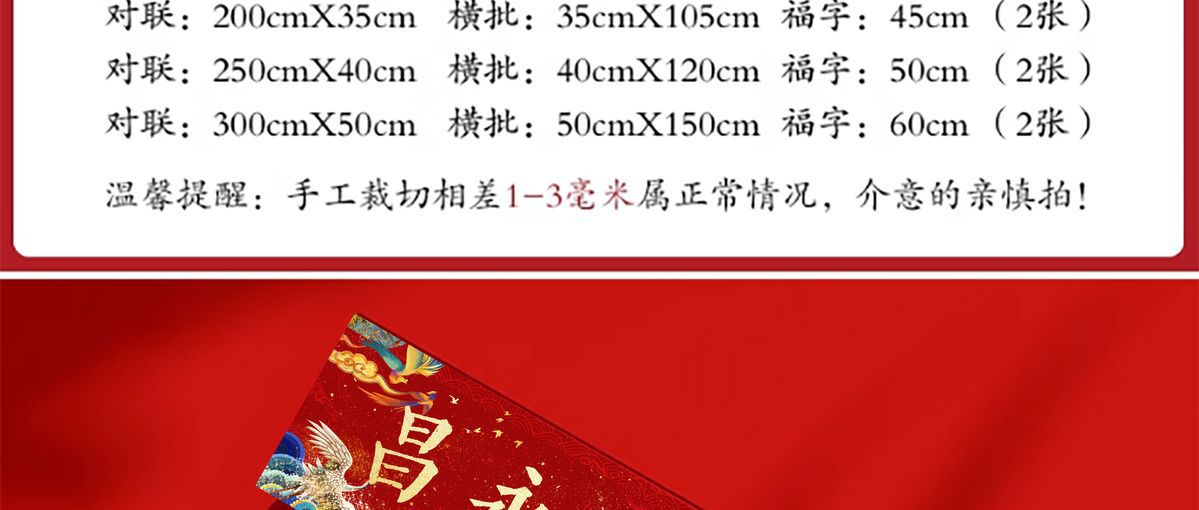 | 1.2 m long and 20 m wide/couplet + banner +1 blessing | CN¥ 65.5 |