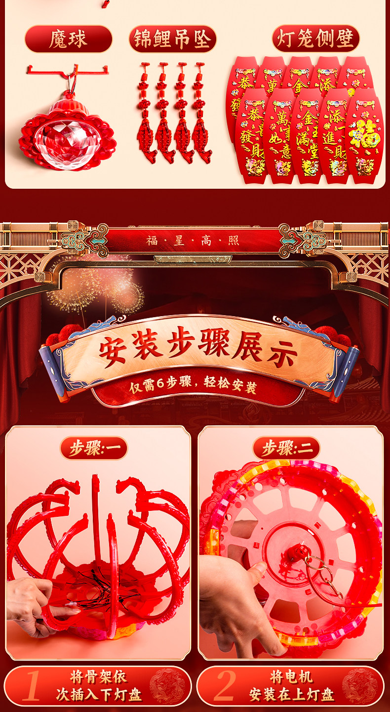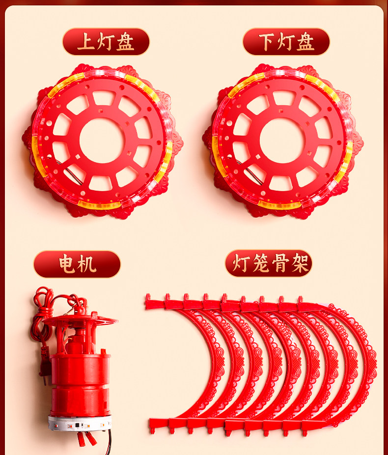 60# colorful all red + rotating colored lights (diameter 42cm) pair