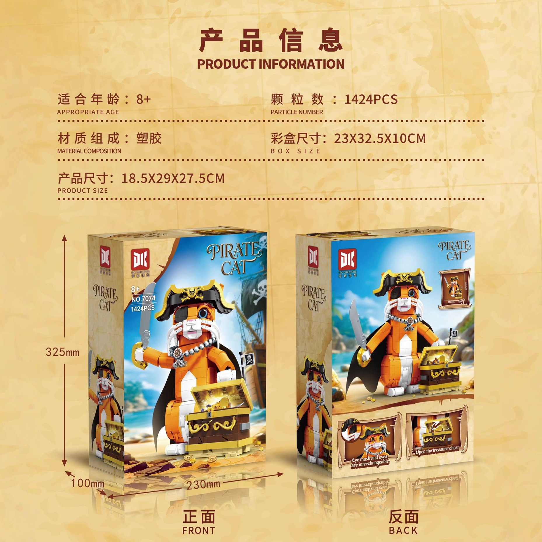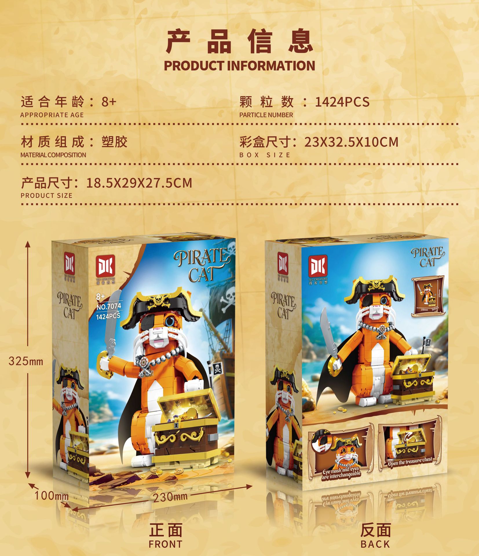 [dk7074] pirate cat-1424 pieces