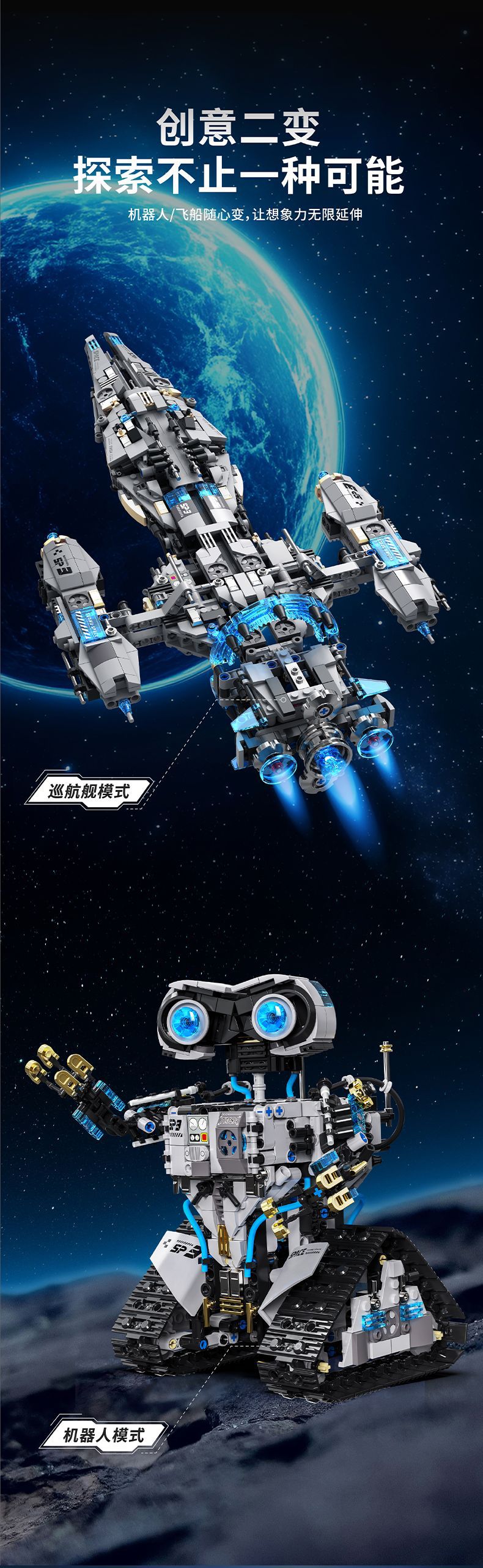 [t1107] remote control programming 2-variable robot (detachable spacecraft)-1468 pieces