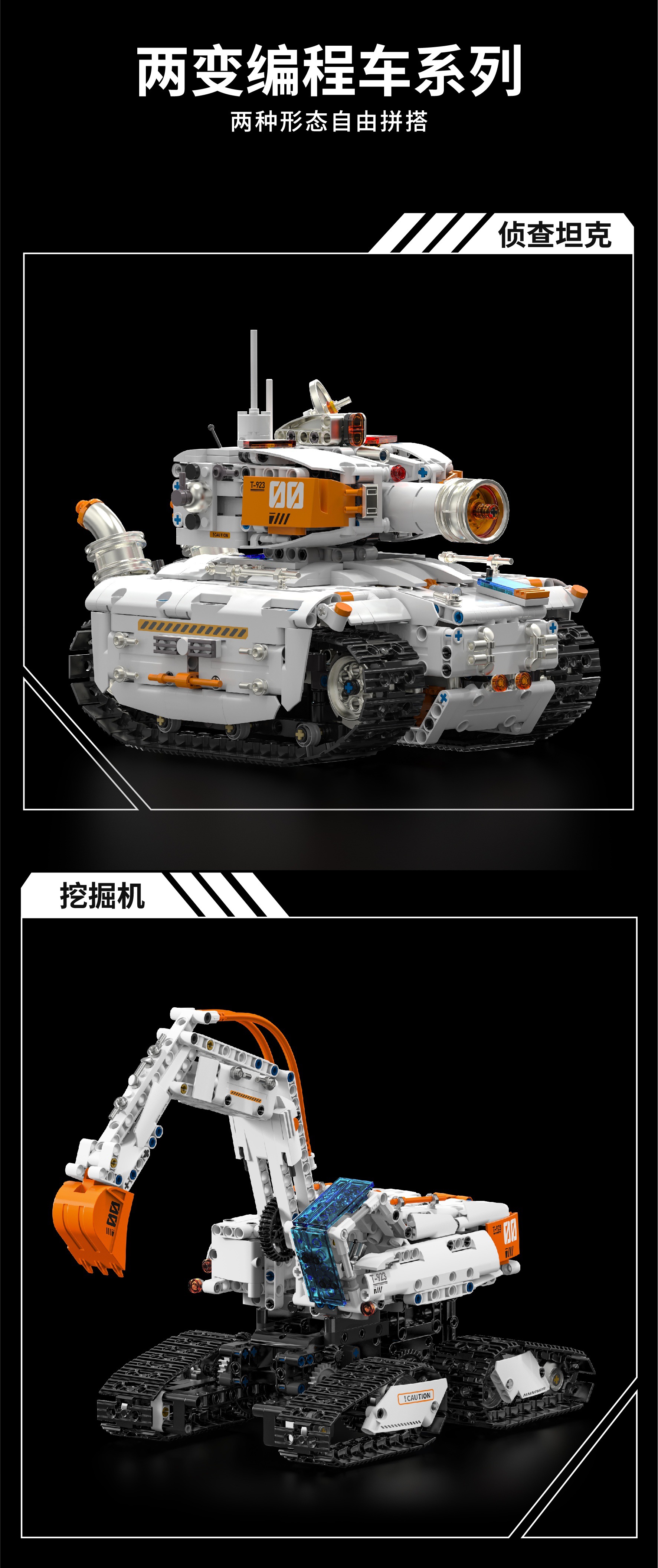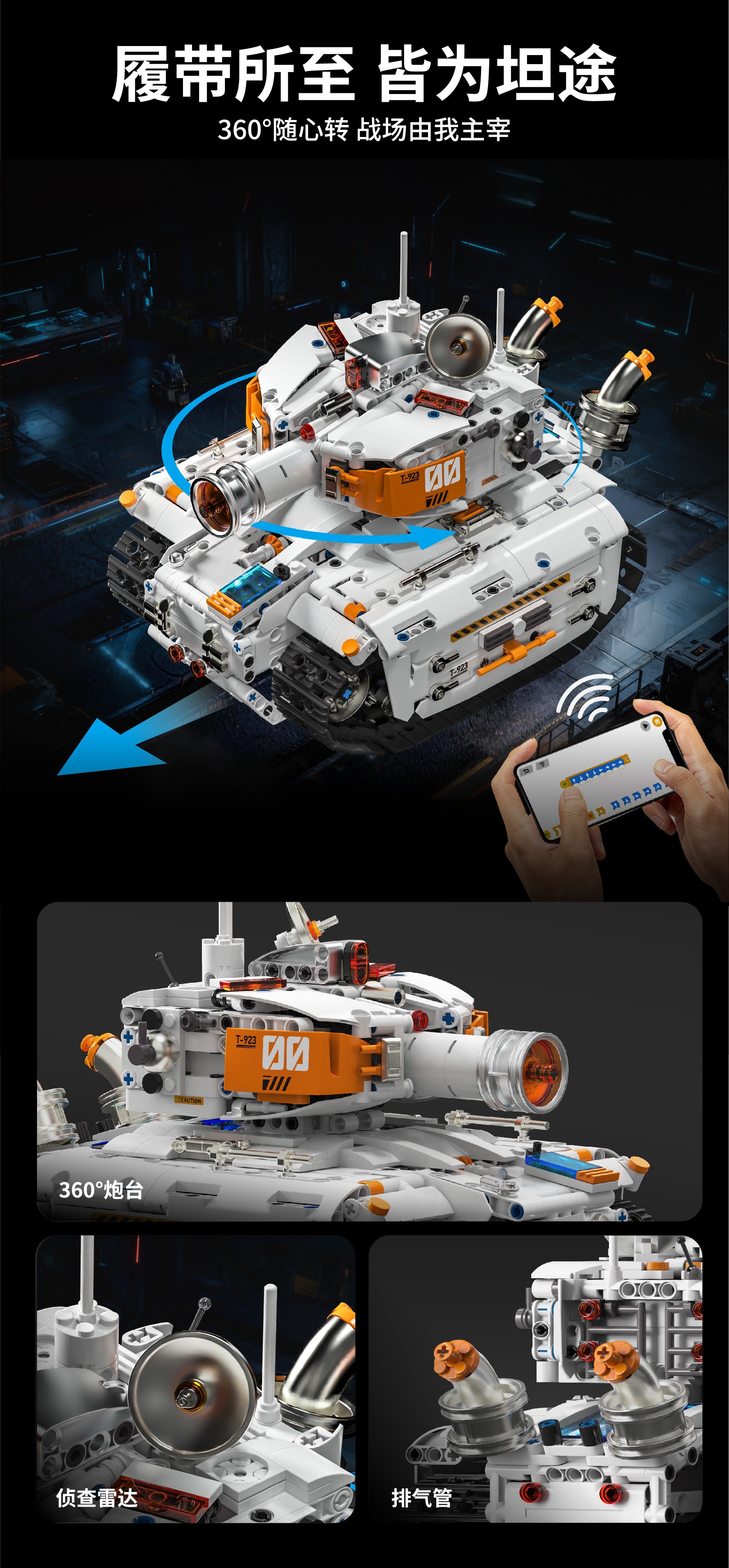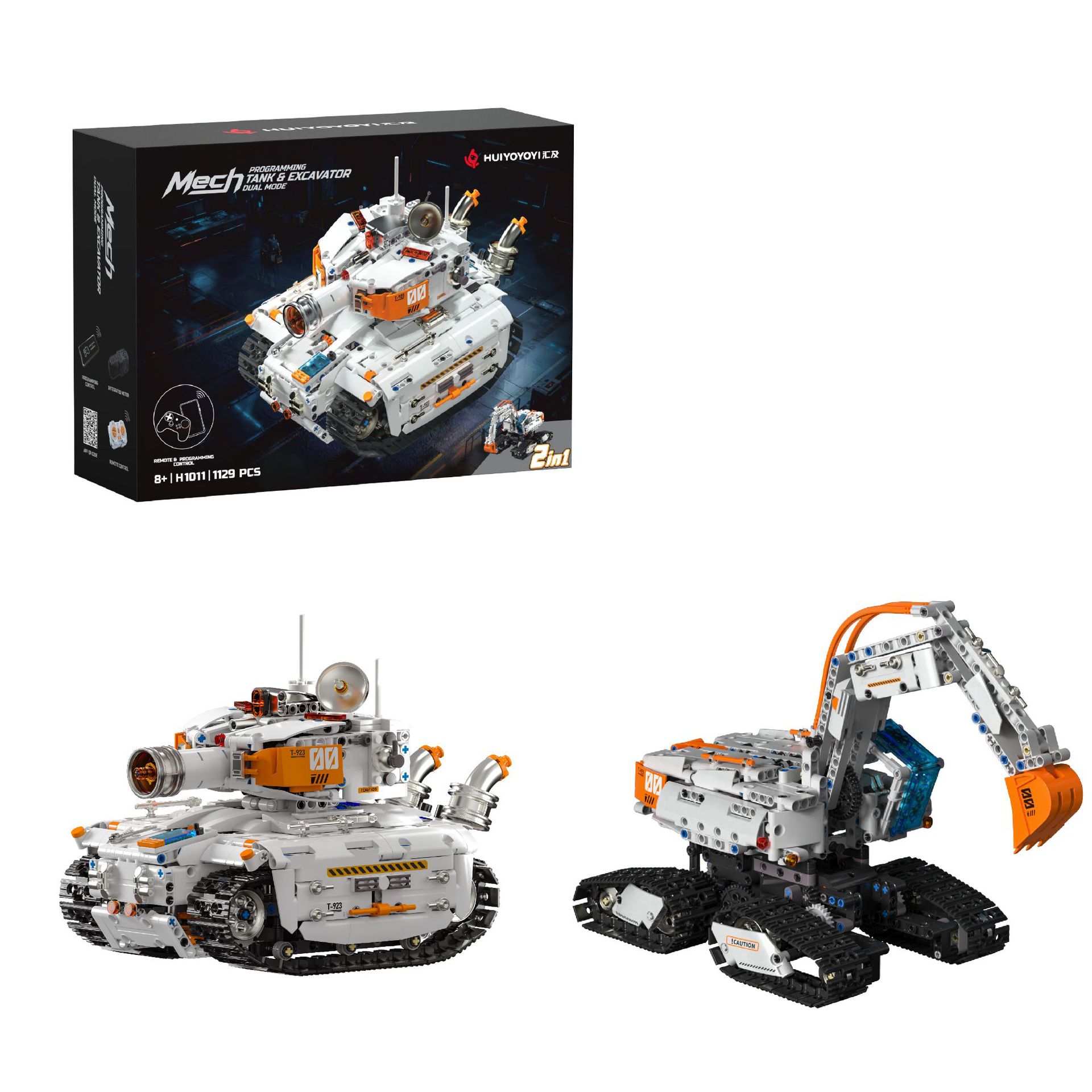[h1011] dual-form engineering tank (remote control programming app)-1129 pieces