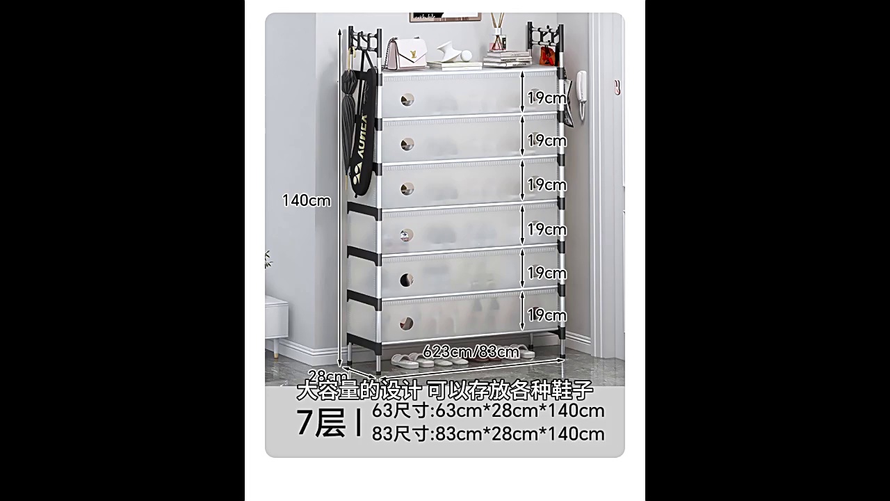 [multifunctional shoes and hat rack basic style]-black 7 layers 63cm