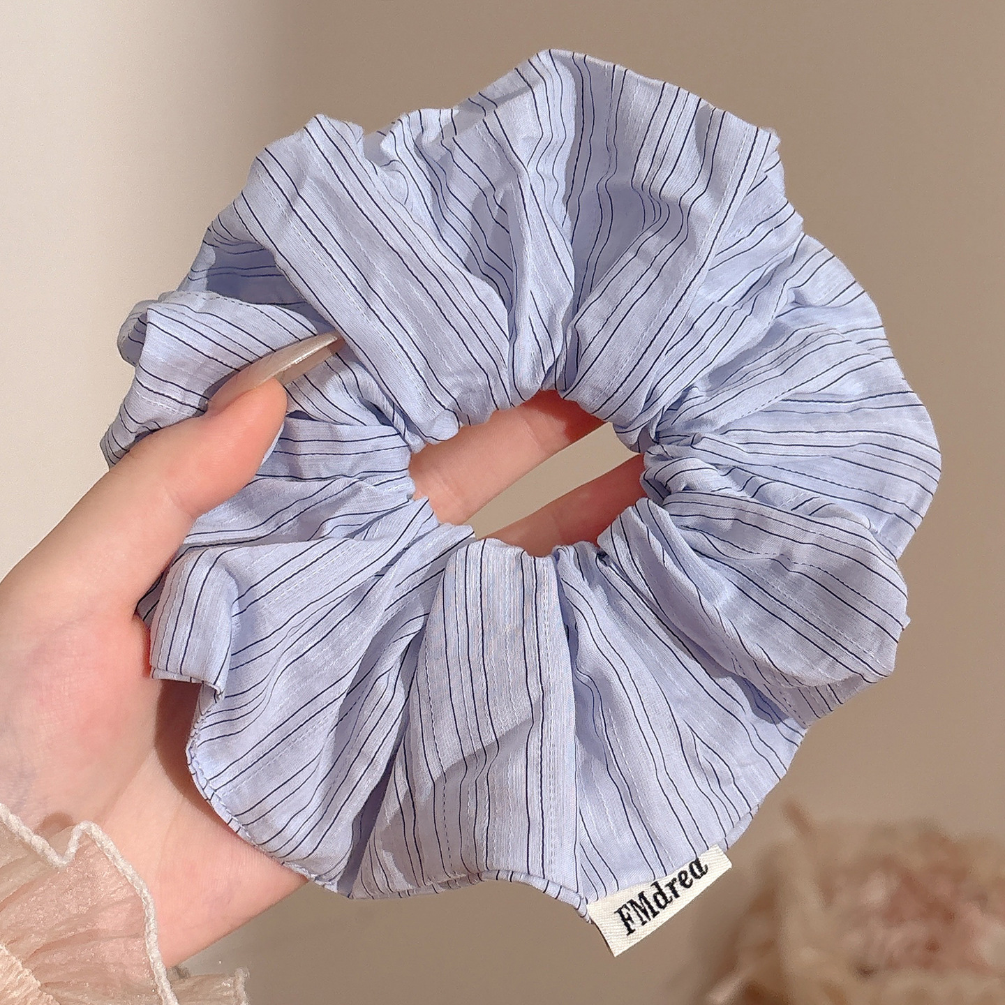 1# blue plaid square scarf hair ring 22cm