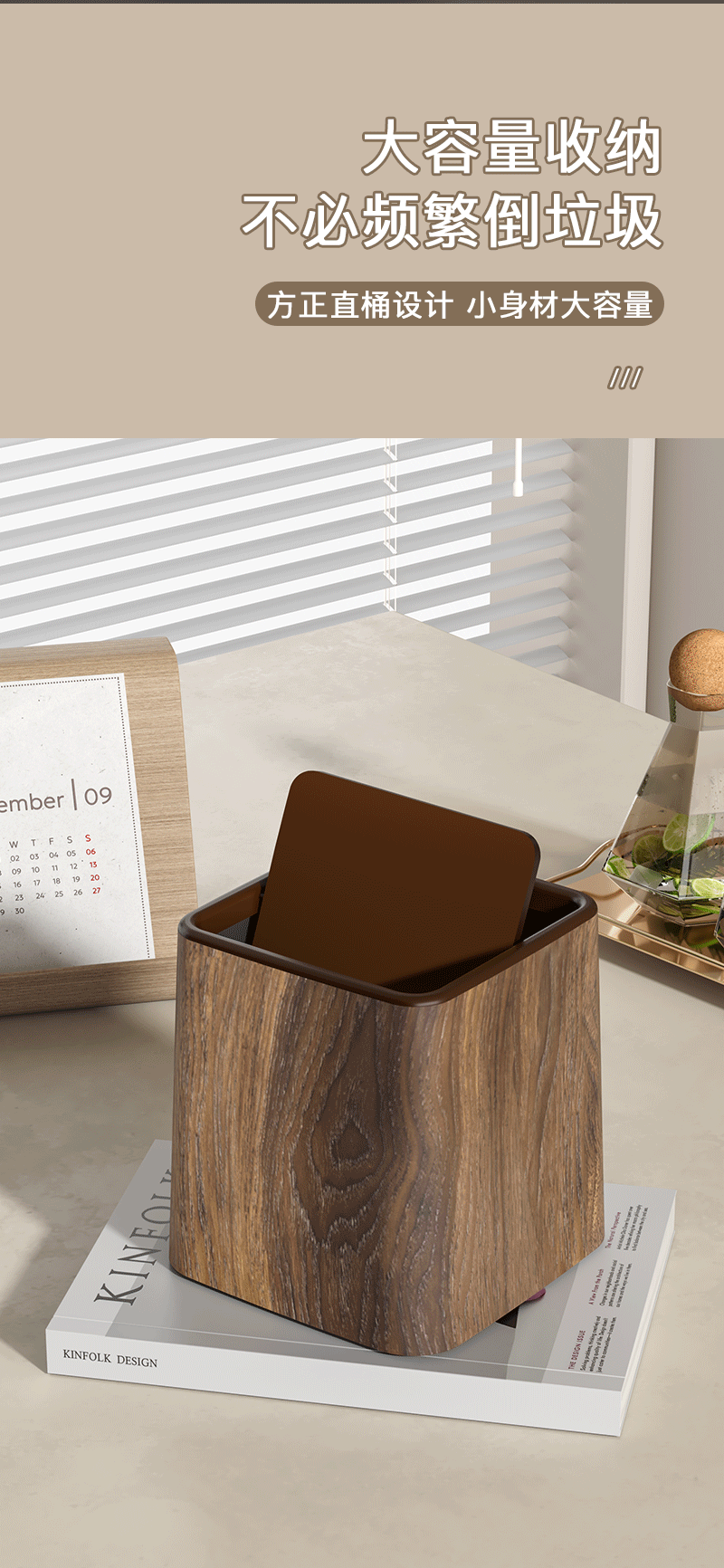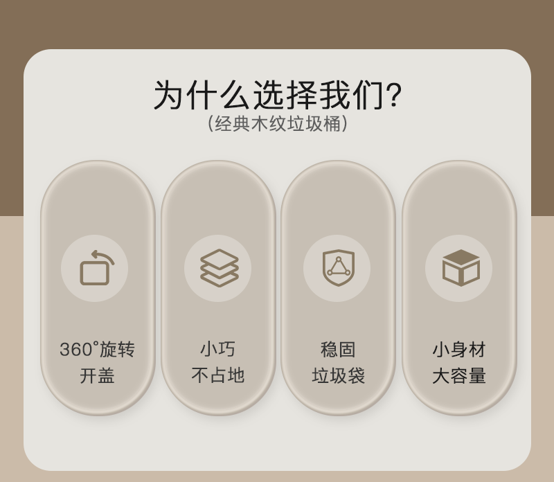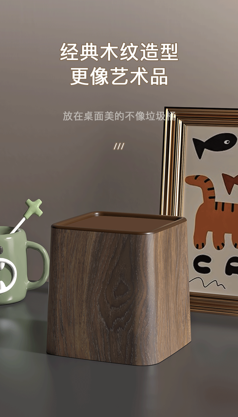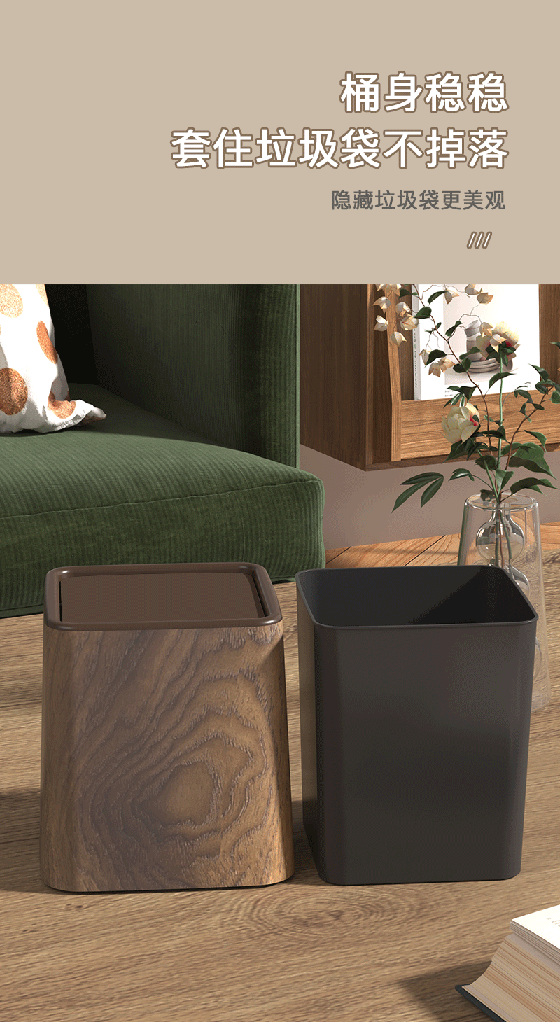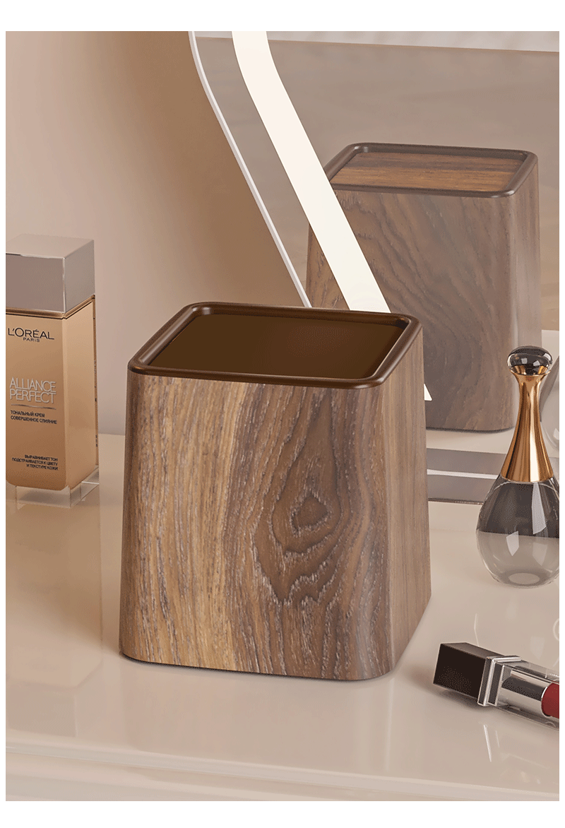 [rocker cover] gray wood pattern trash can