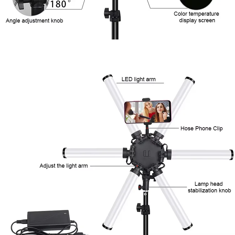 可拆卸灯条: 包括两条电源线和两条可延伸的灯条,这些灯条在环形灯之外照明。轻松地将它们放置在对象的侧面,上方或下方,以进行有针对性的照明-在光线昏暗的房间中尤其有用。