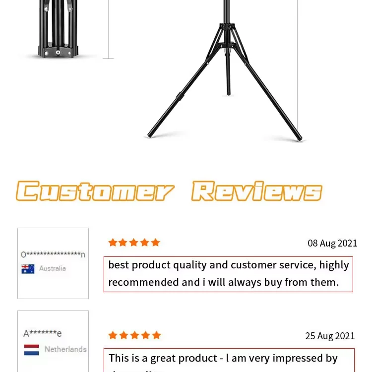 坚固的三脚架: 高度从32英寸到87英寸可调,顶部采用1/4英寸螺纹安装座,由铝合金制成。坚固的三脚架设计结合了一个安全的锁定系统,确保设备在使用过程中保持完美稳定,并为您的创意项目提供可靠的支持。