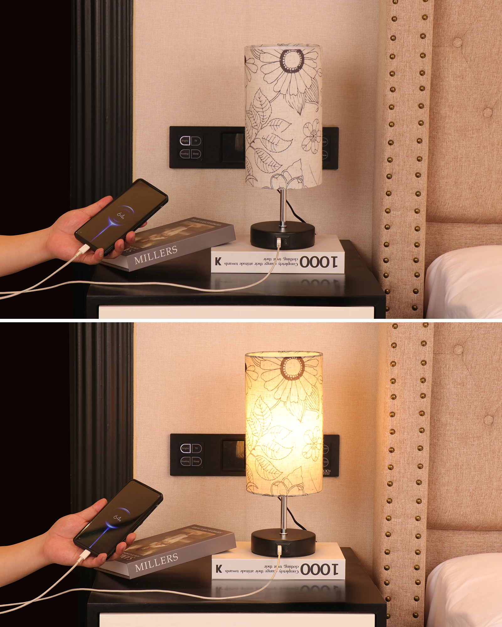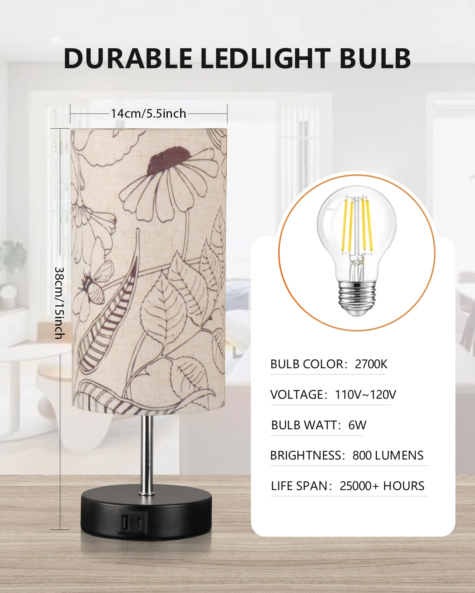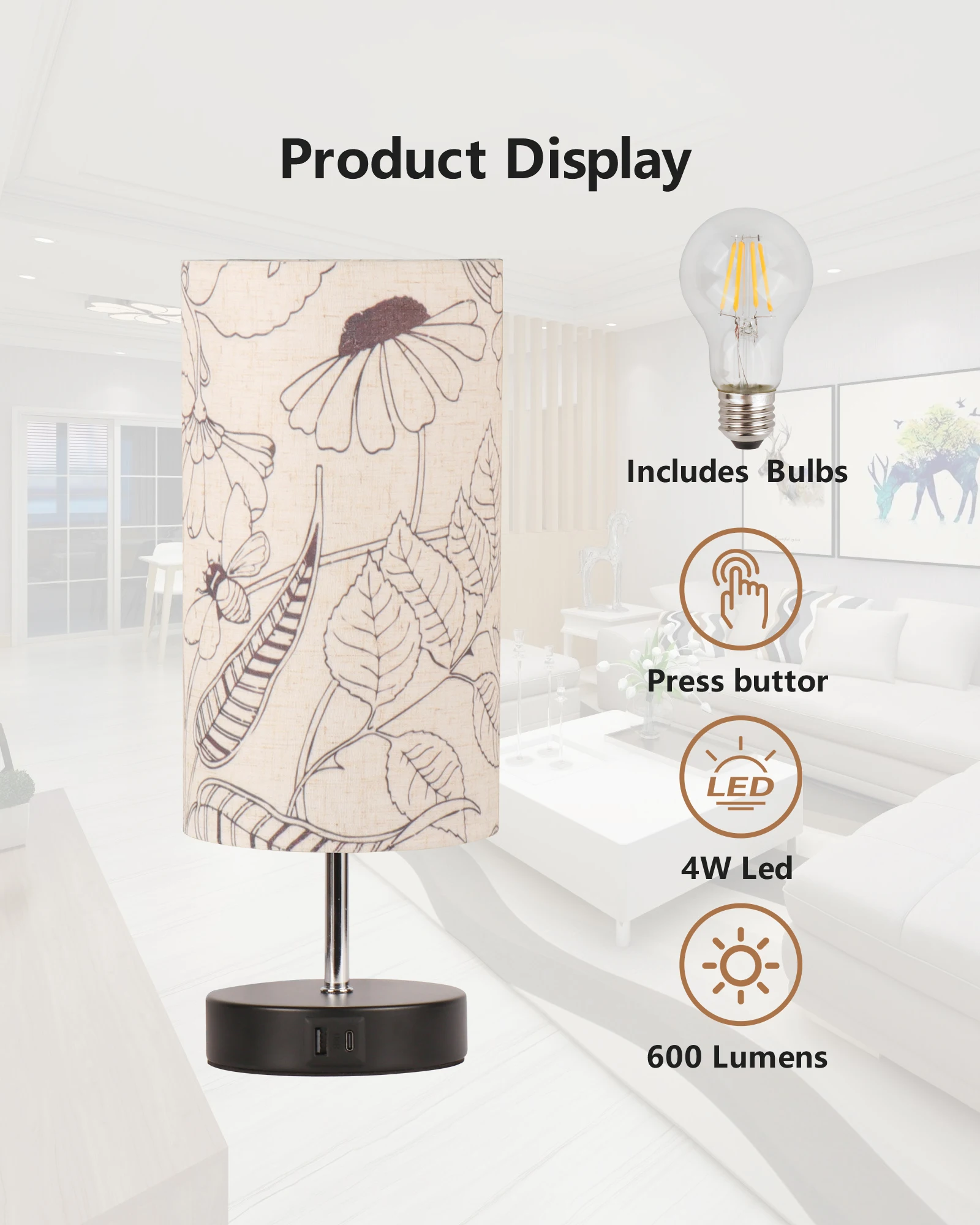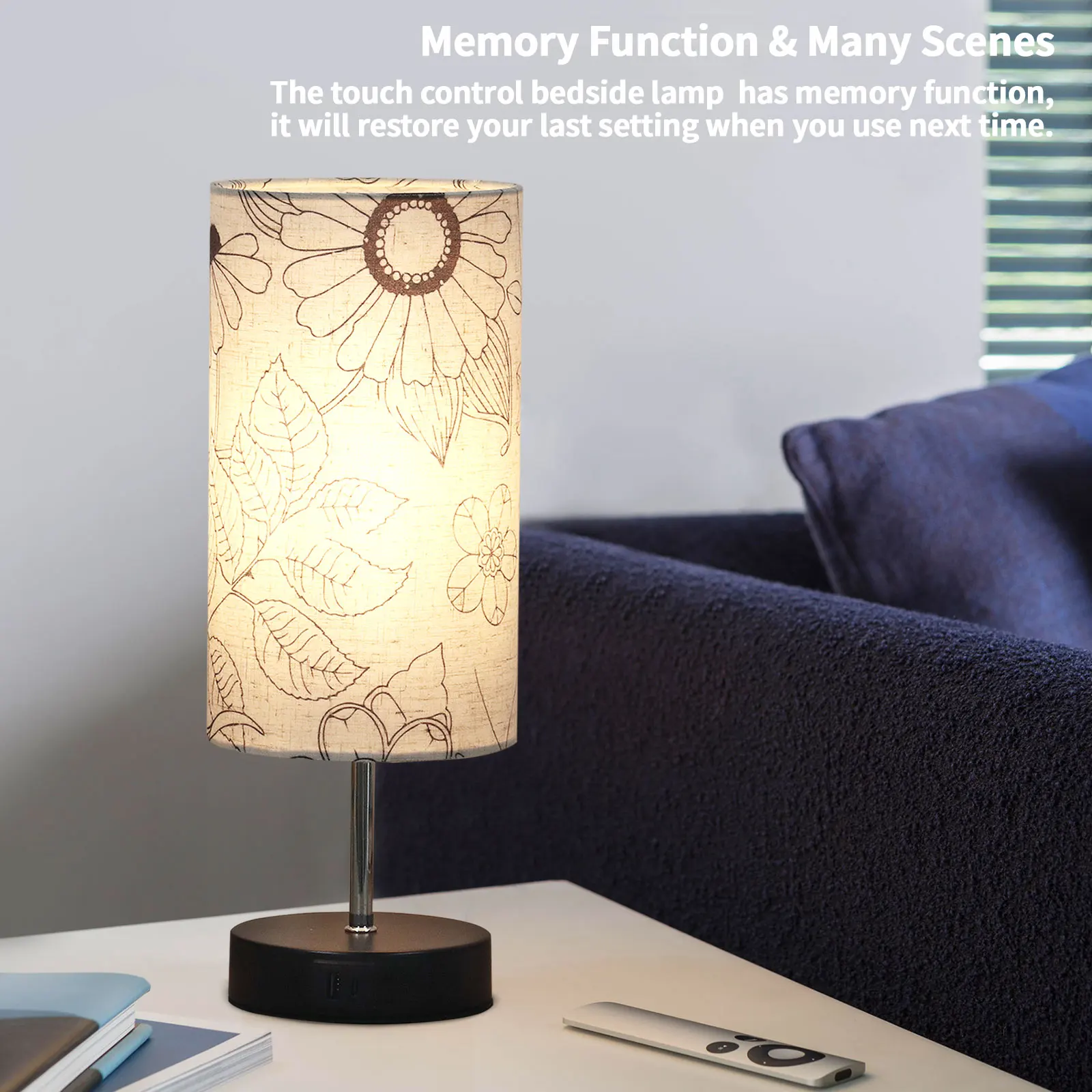 产品功能 | wholesale decorative modern table lamp pattern print fabric lampshade multifunctional desktop decoration table lamp |