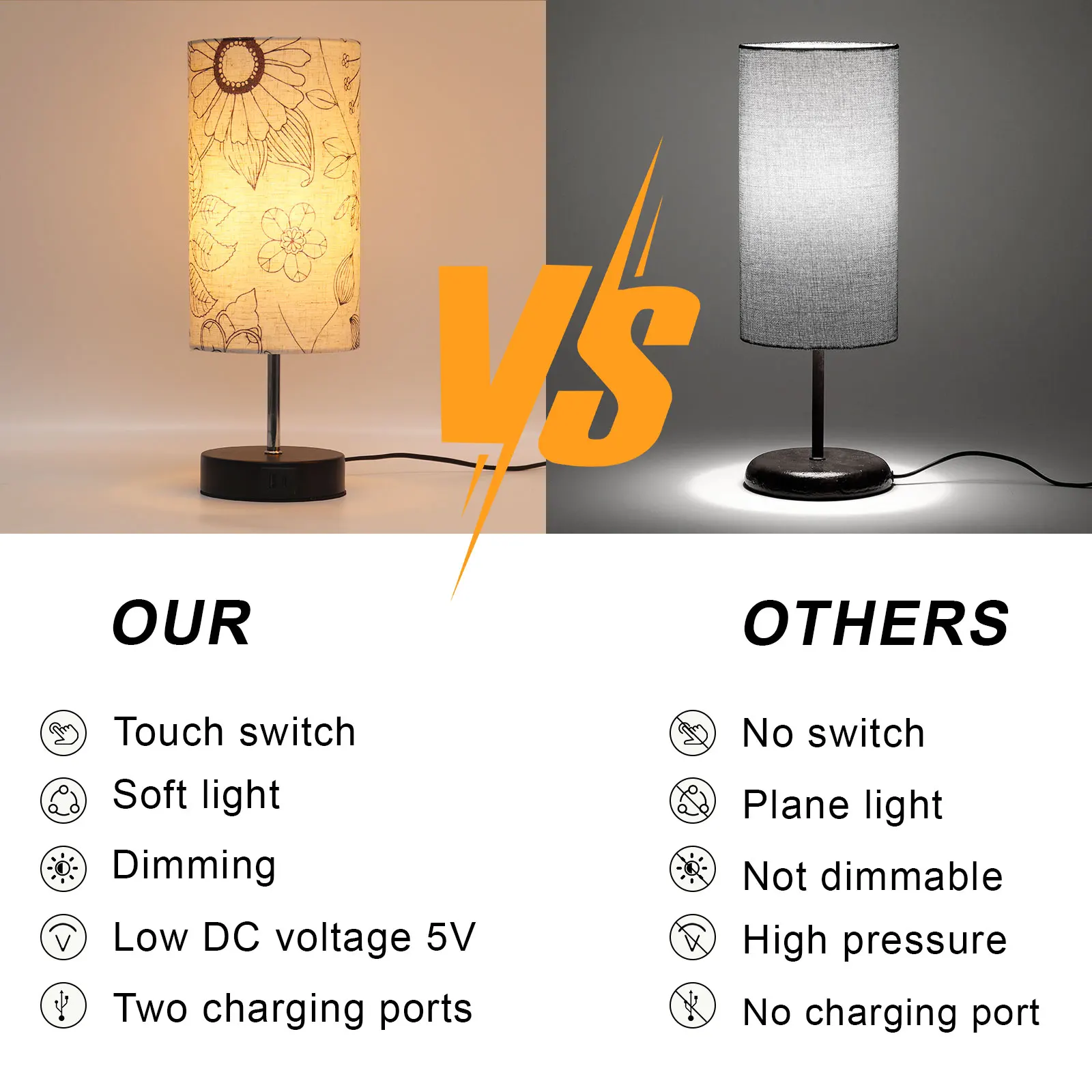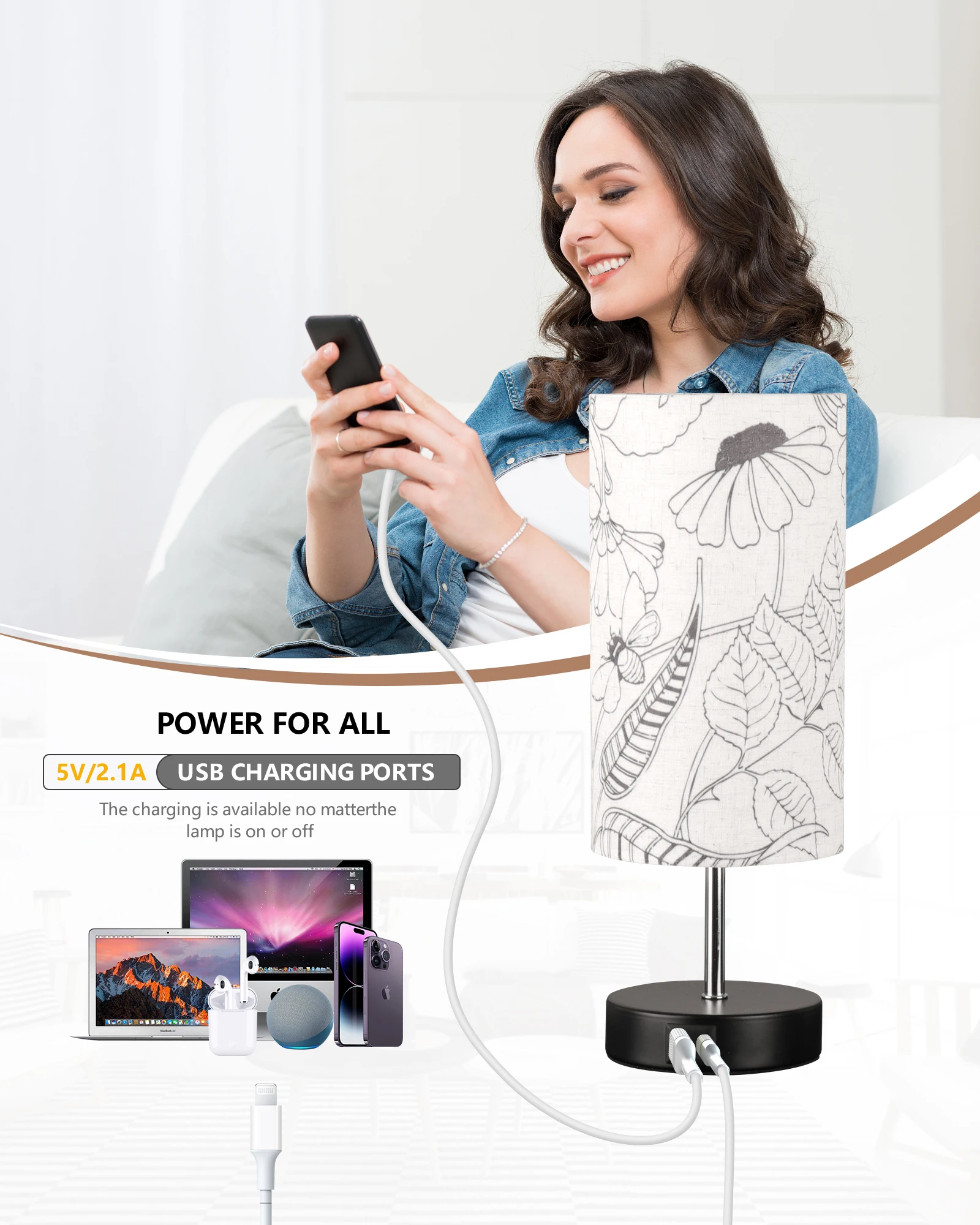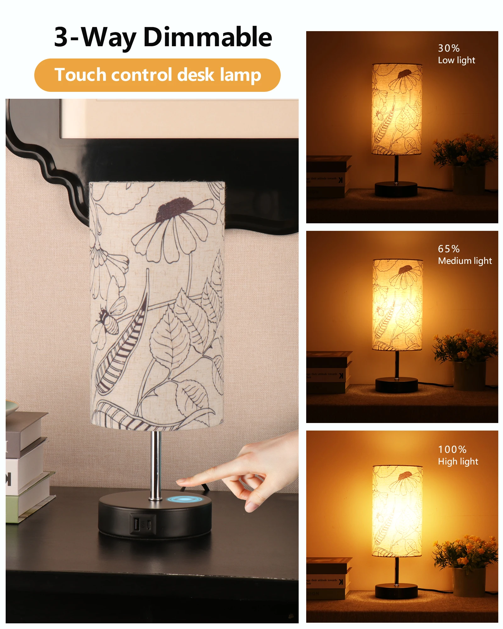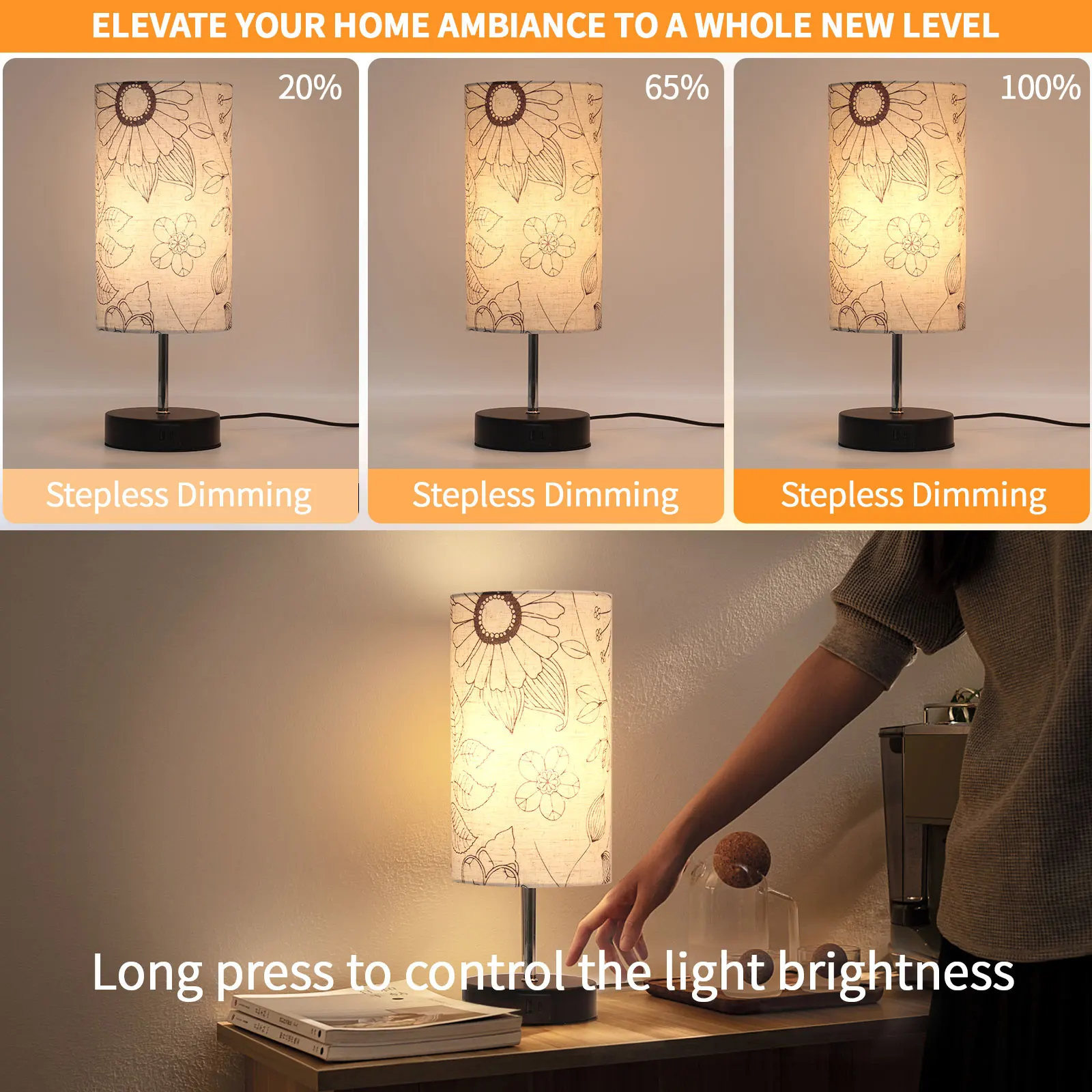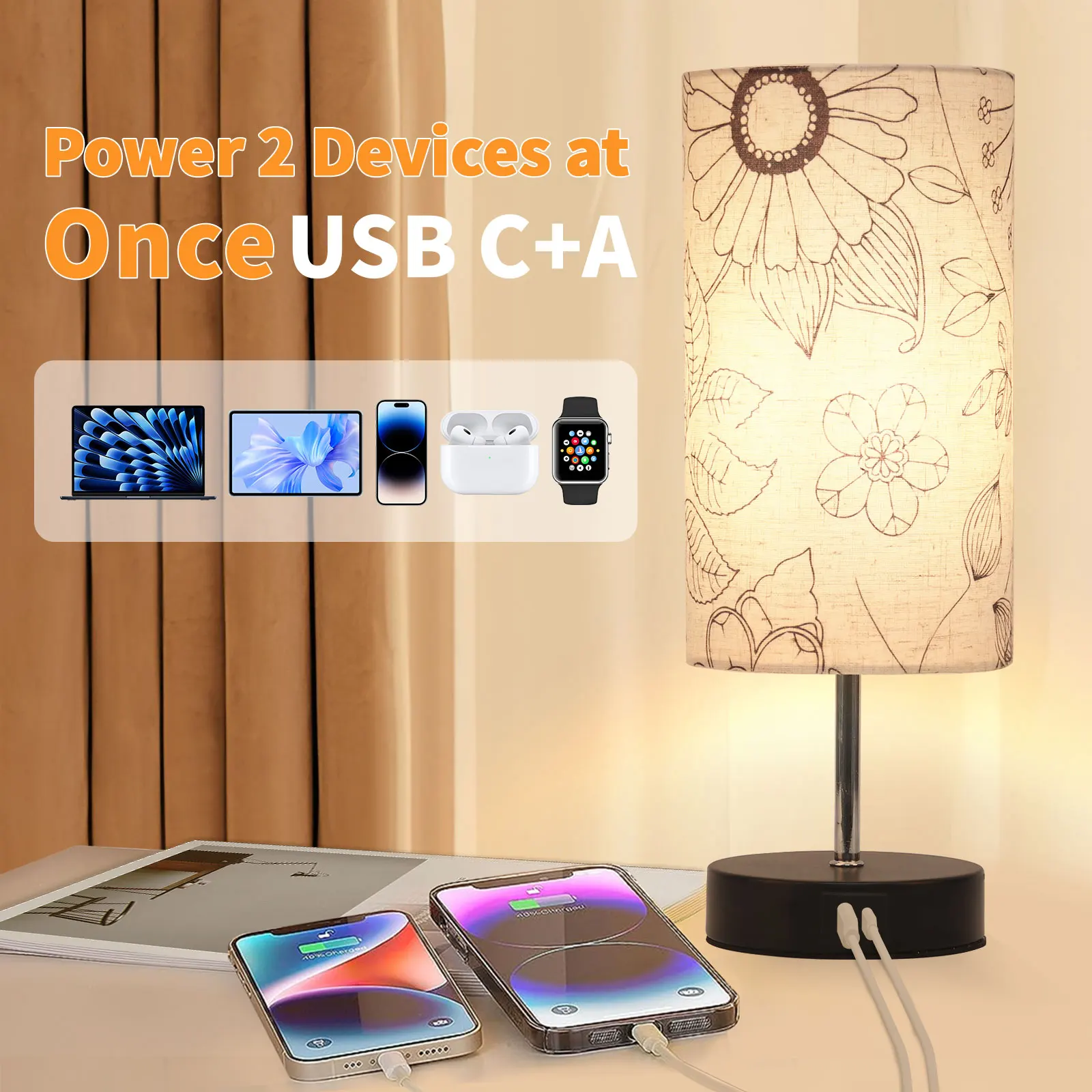产品功能 | wholesale decorative modern table lamp pattern print fabric lampshade multifunctional desktop decoration table lamp |