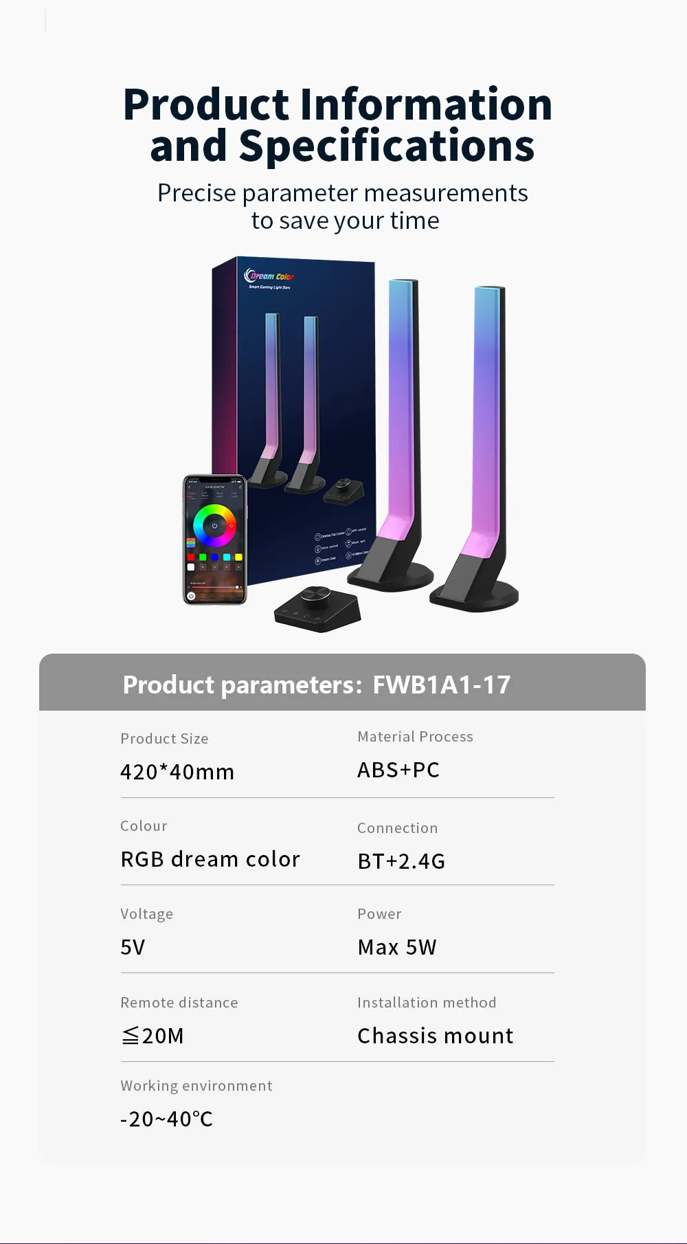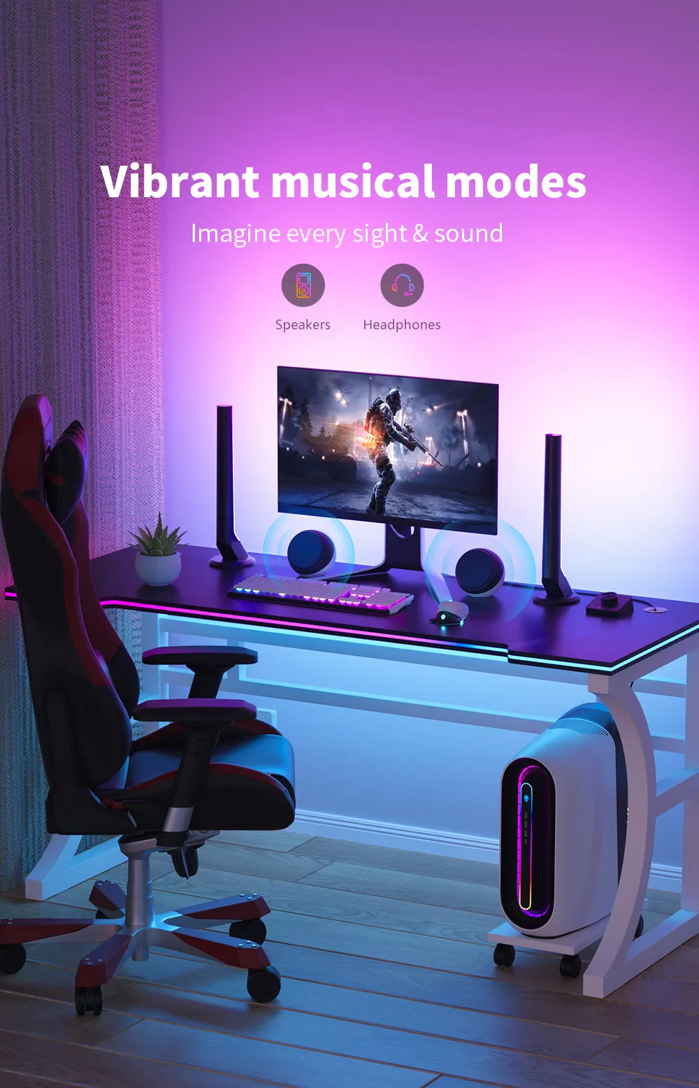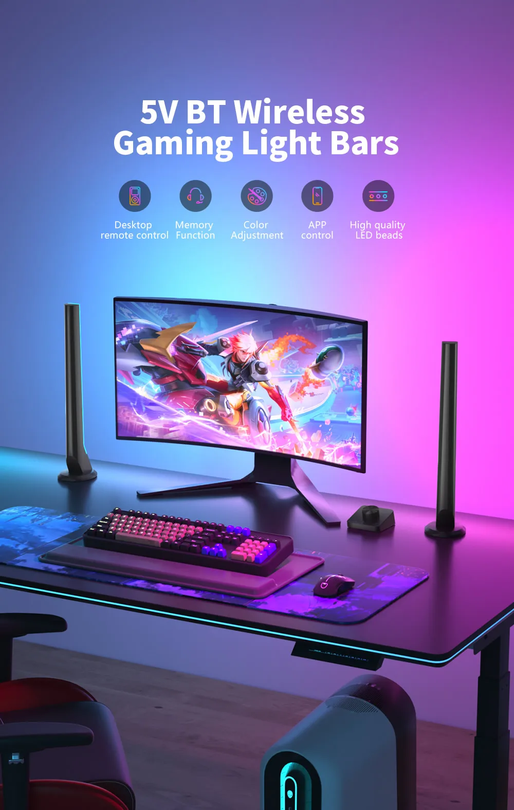 CL Lighting 5V Wireless RGB Smart Gaming Light Bars Sync with Music Multi-Mode LED Ambiance for Gaming Rooms