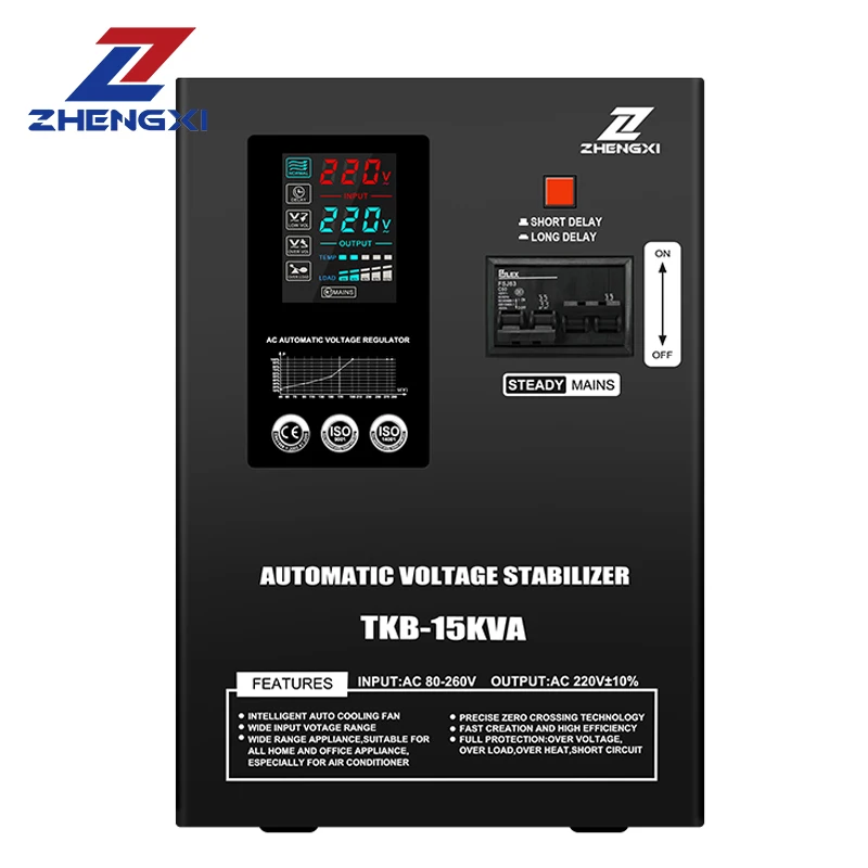 Hot Selling 10000VA 15000VA Automatic Voltage Stabilizer Single Phase AC Automatic Voltage Regulator 220V Output Wall LCD SVC