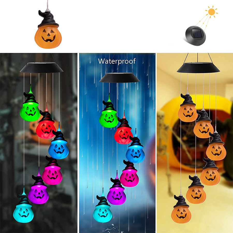 solar wind chime pumpkin lamp