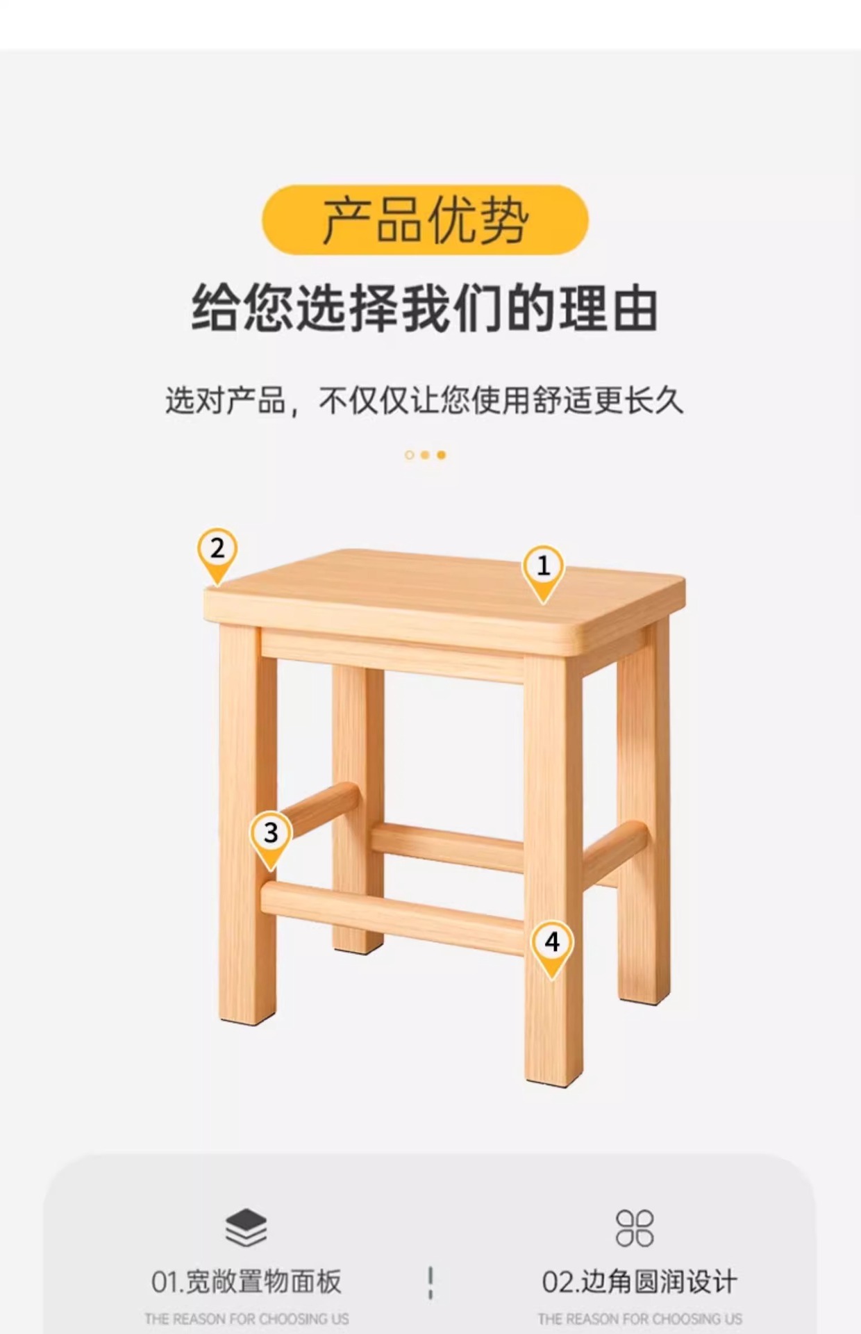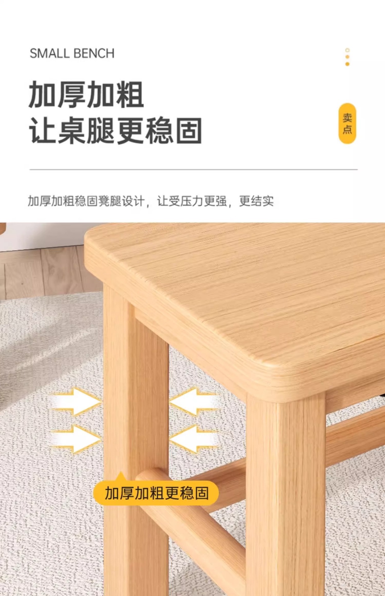 [imported rubber wood thickened surface] raw wood color 45cm high-no cracking
