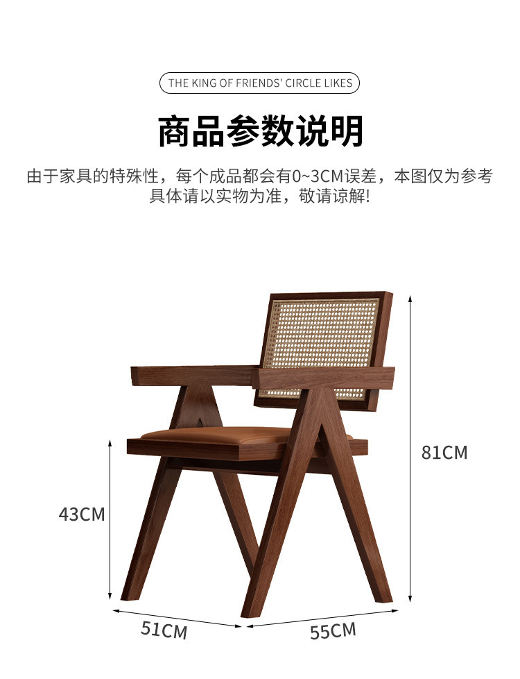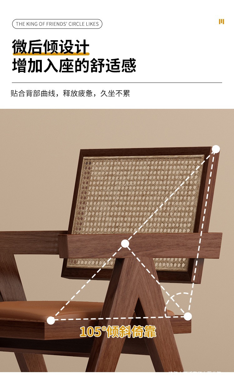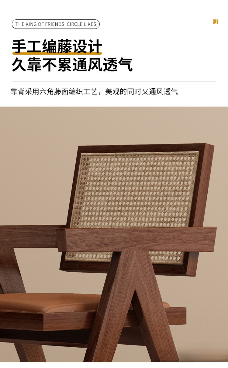 walnut chandigar chair (rattan cushion)