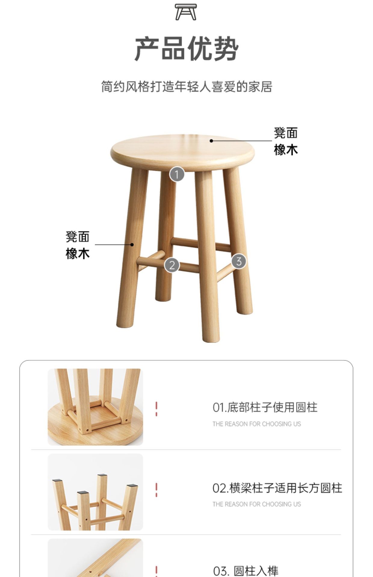 [thickened 25mm surface] 45cm high full rubber wood
