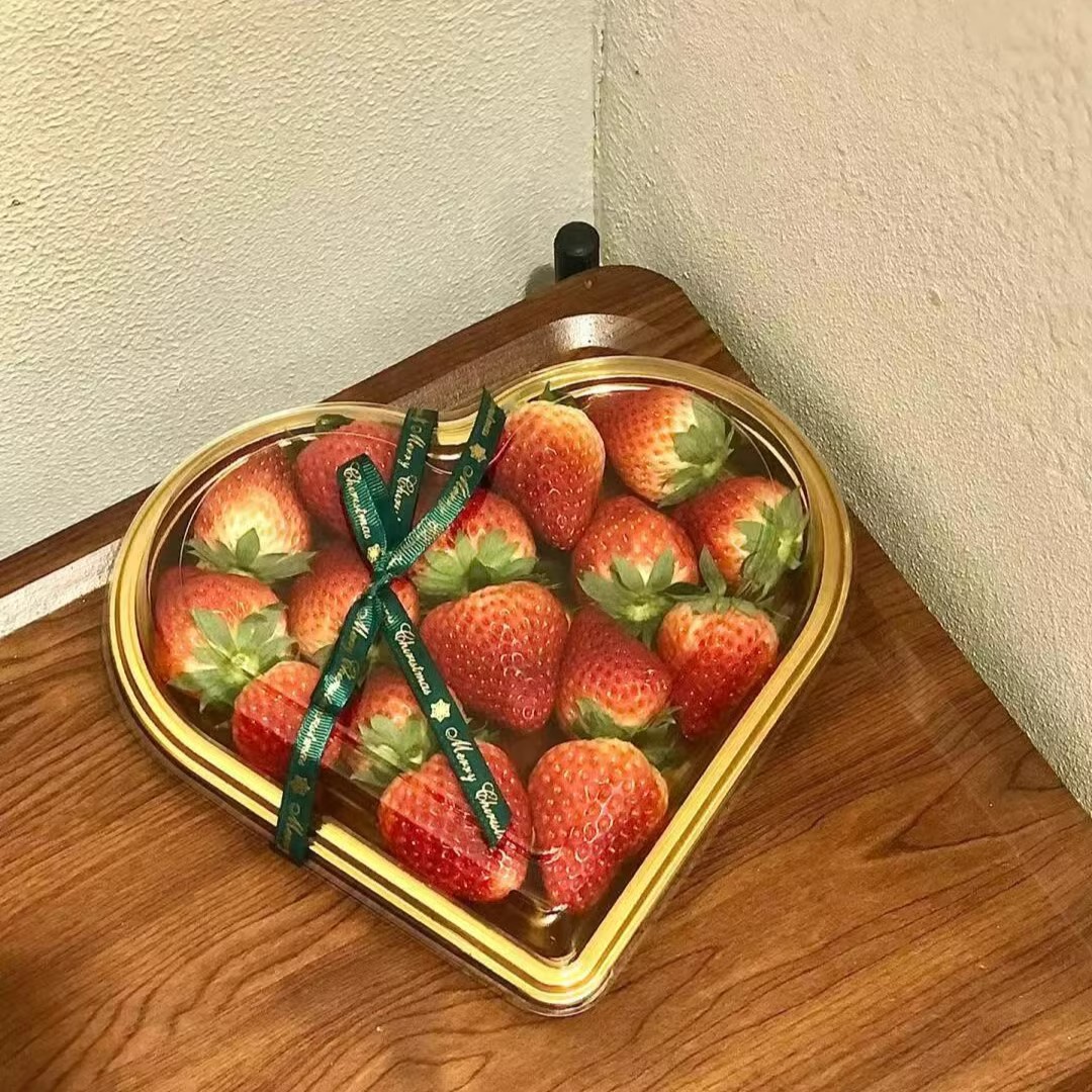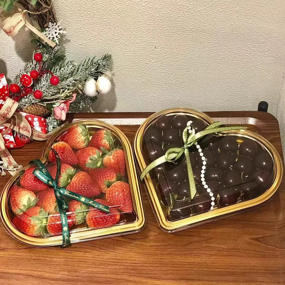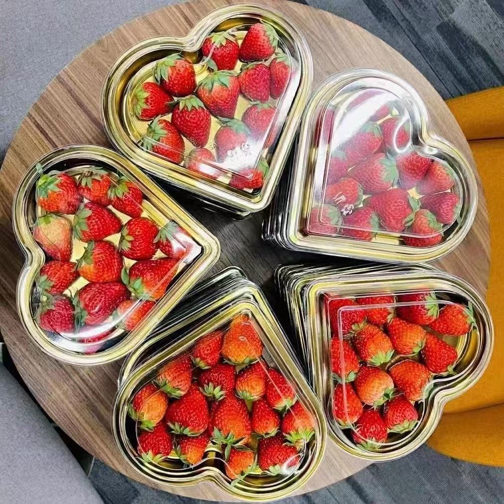 disposable fruit container strawberry cherry tomatoes packing box cherry fruit cutting box golden heart-shaped plastic gift box sub-packaging