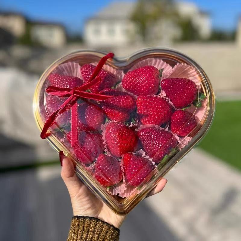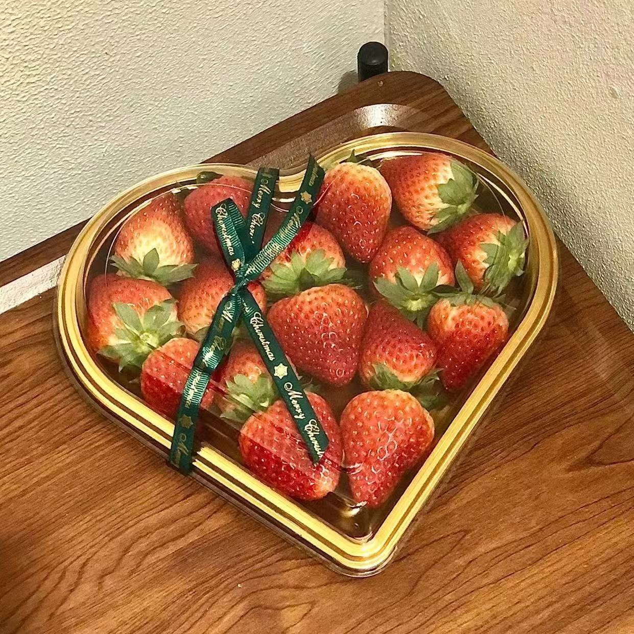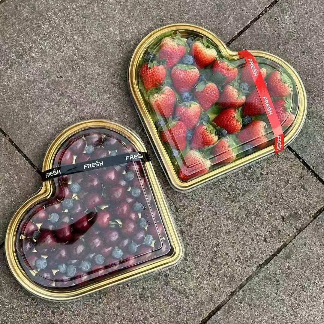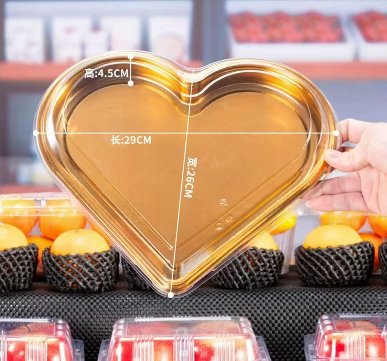 disposable fruit container strawberry cherry tomatoes packing box cherry fruit cutting box golden heart-shaped plastic gift box sub-packaging