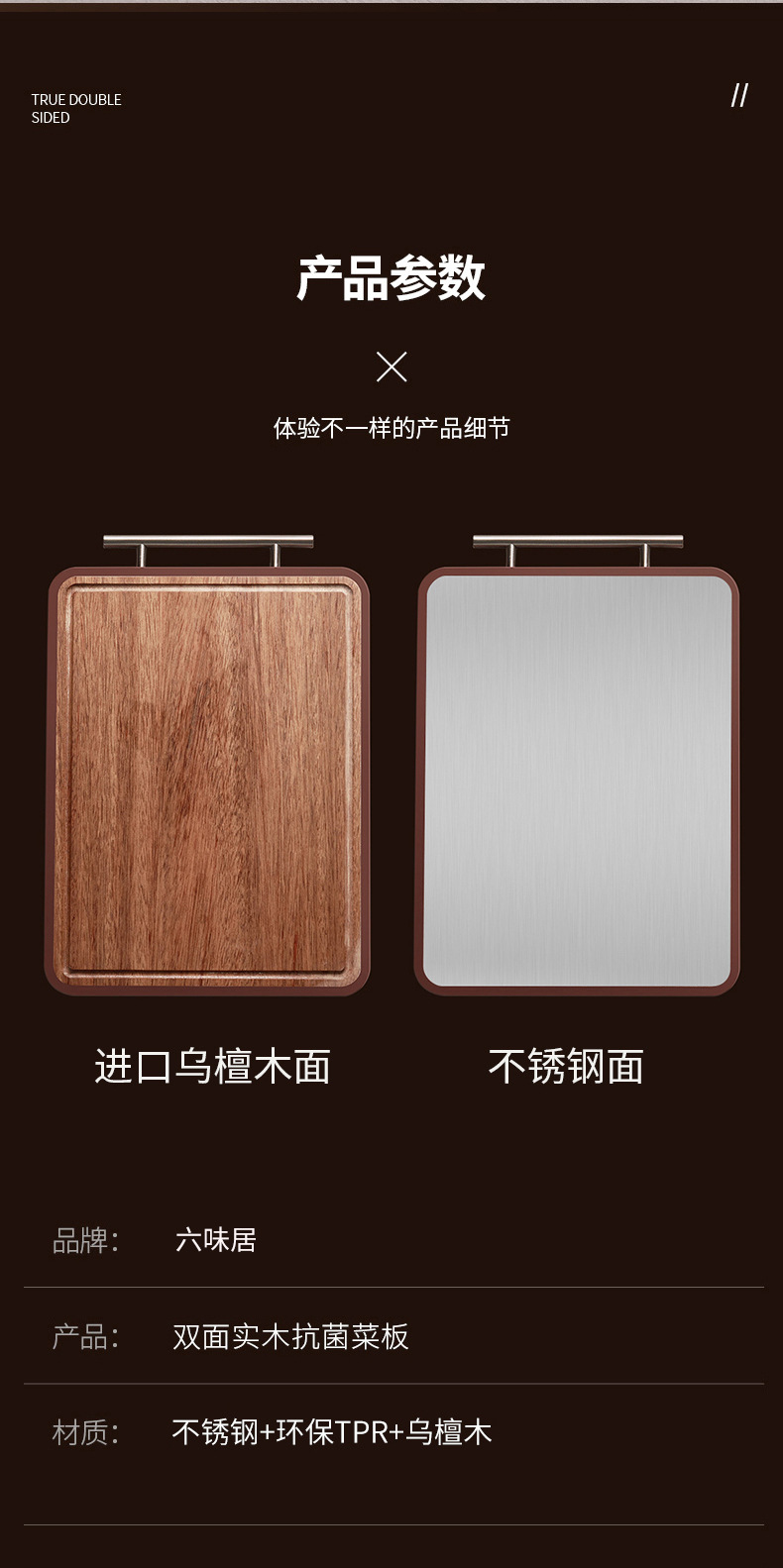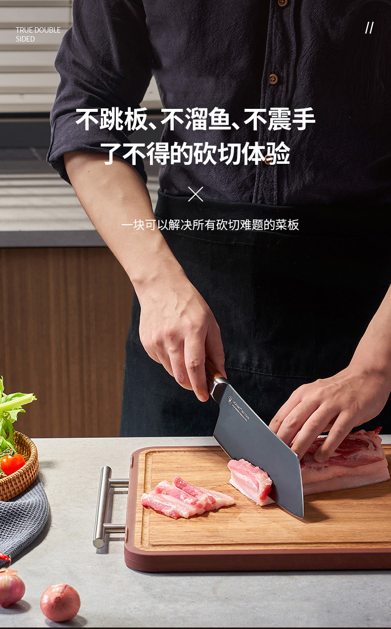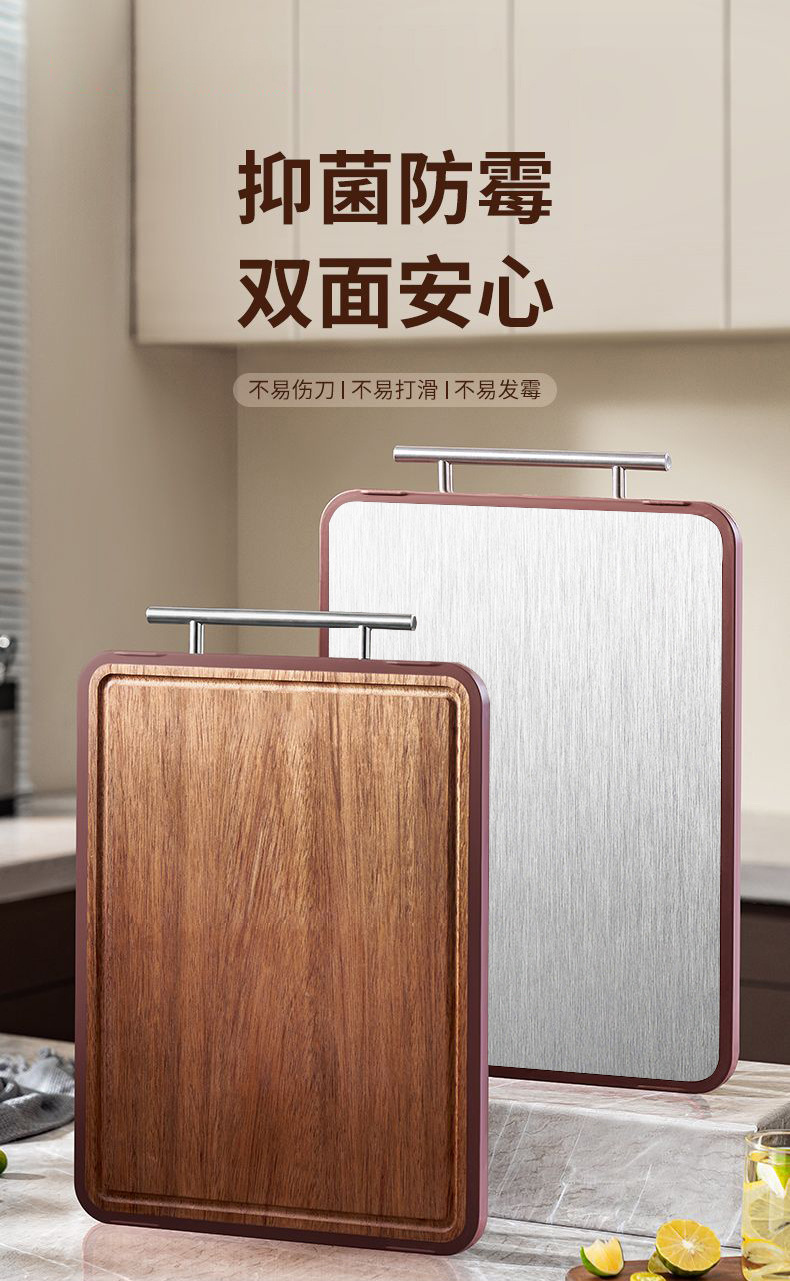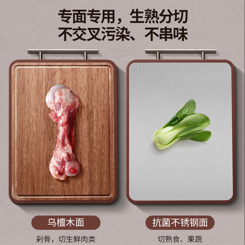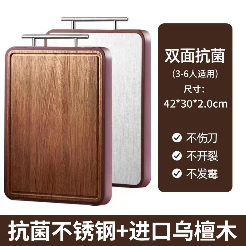 yiyuan ebony cutting board household stainless steel double-sided cutting board solid wood hotel vegetable cutting board wholesale