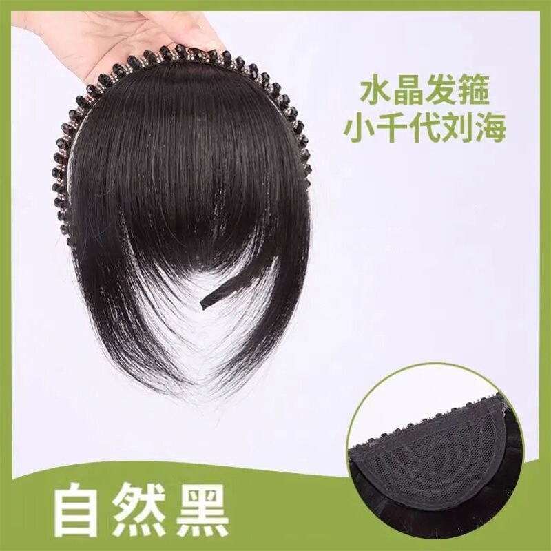 wig rhinestone headband bangs-natural black