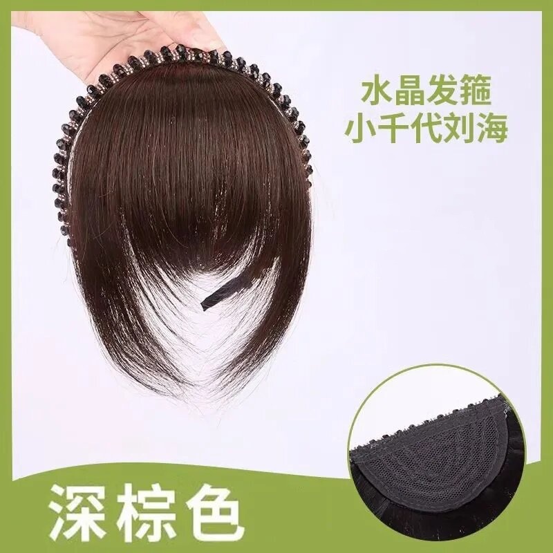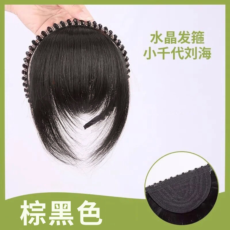 wig rhinestone headband bangs-dark brown
